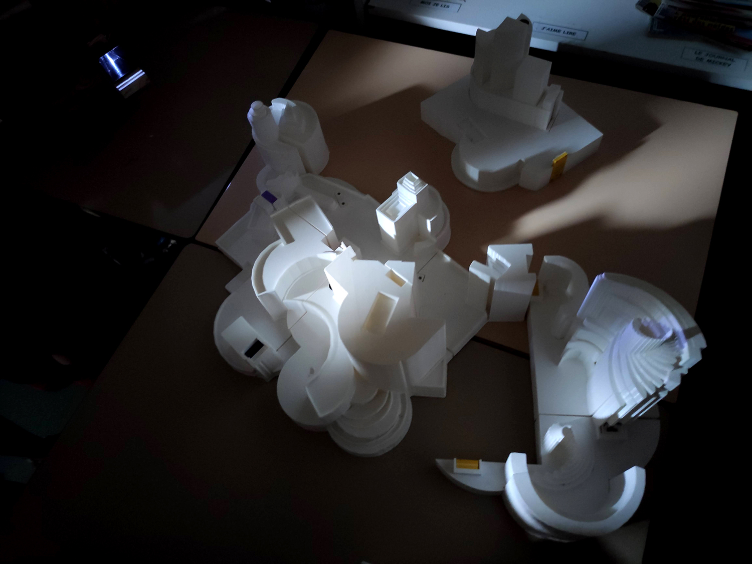 - assemblage des sculptures imprimées en 3D, intégration de la puce RFID et test de scénographie