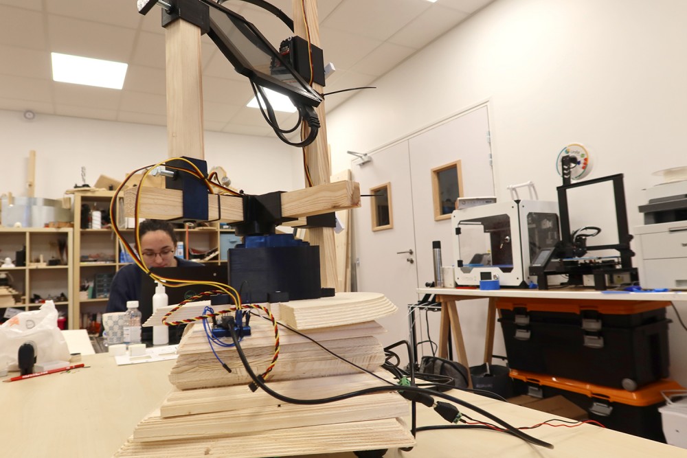Écrans •Création artistique et micro-exposition Mercredi 27 octobre 2021 Artlab et Edulab Pasteur Création d'Écrans, sculpture mécatronique graphique et sonore, présentée à un groupe d'enfant de l'accueil de loisir Dominique Savio pendant un temps d'atelier.