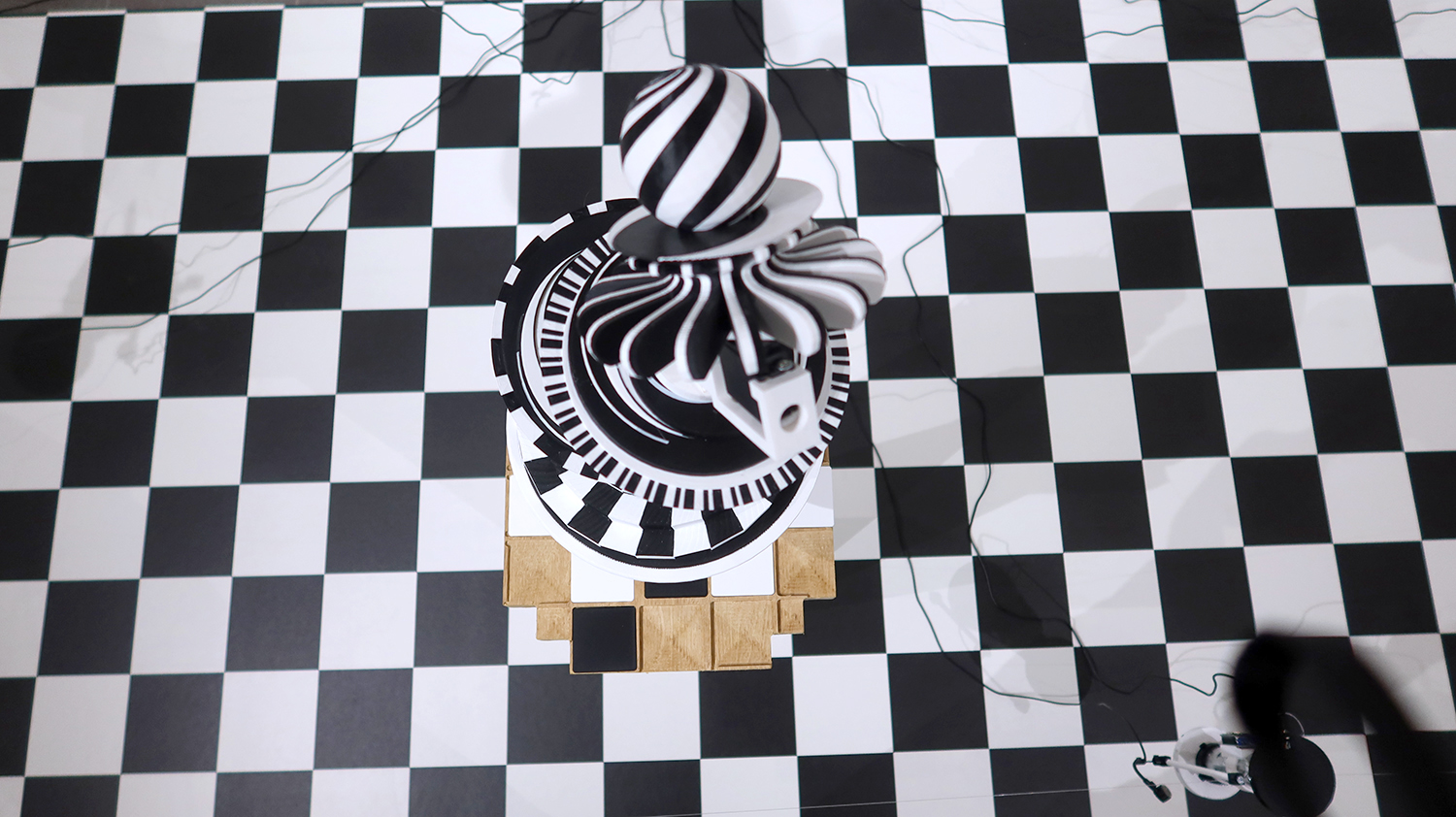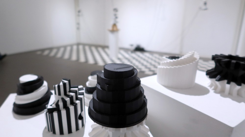 Exposition in-situ Les Flûtes et le Fou à L'Aparté à Iffendic qui fait à suite à 2 mois de résidence dans le lieu. L'exposition présente deux nouvelles créations : Les Flûtes et Le Fou actionnées par L'Horloge ainsi qu'une série d'éditions/sculptures sonores intitulée Les Phonotons, série 5.
