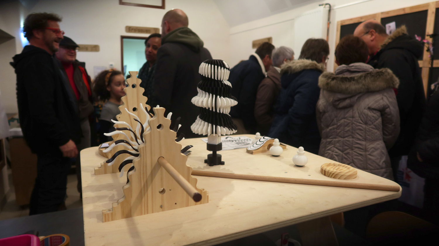 Les Tables d'activités, crééent en partie dans le fablab avec des makers et habitants étaient exposées pour la première fois.