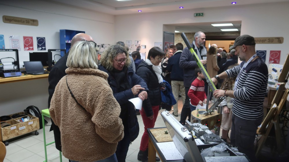 Présentation et exposition d'oeuvres pendant l'inauguration du fablab de Saulnières.