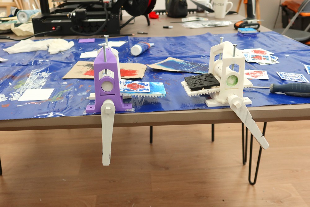 Conception et fabrication à partir d'un modèle d'une presse à imprimer par Gurvan Leroy en service civique à l'association.