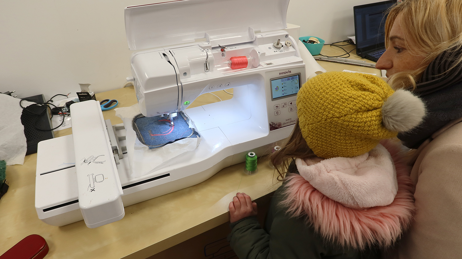 Atelier participatif pour Noël avec l'artiste Agathe Mercat. Nous avons, le temps d'un après-midi, proposé aux habitants de s'inititier à la brodeuse numérique et participer avec leurs créations à une oeuvre collective.
