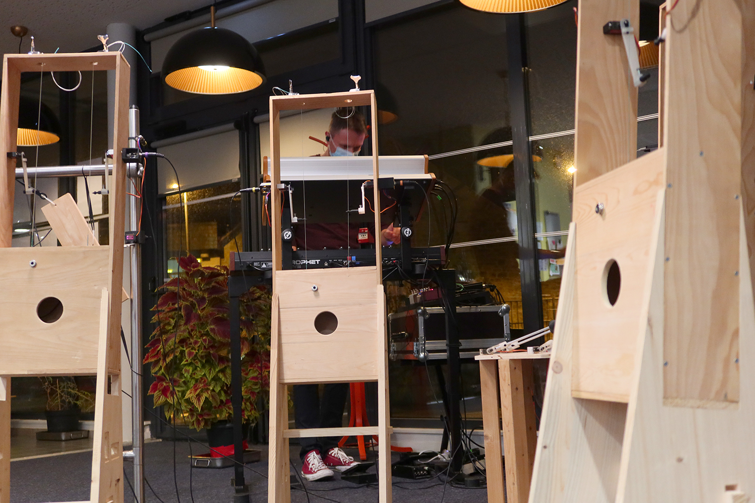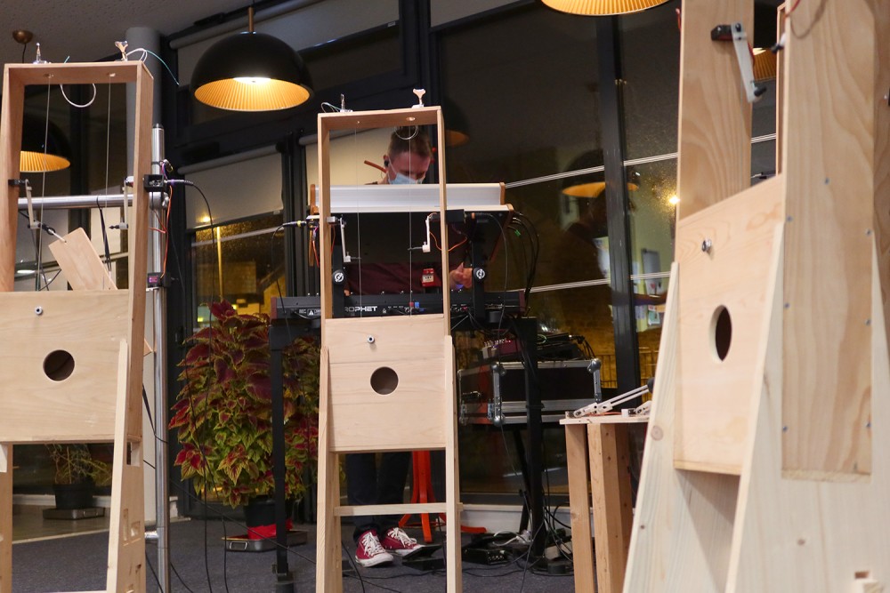 Concert de Playing With Machines pour l'inauguration à la médiathèque d'une micro-folie, musée numérique.
