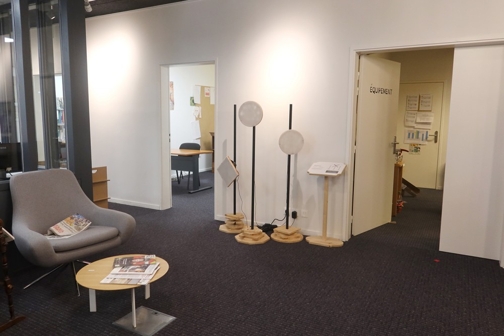 Exposition en deux parties et médiation à la médiathèque Le Tempo autour des oeuvres Bras, Hanging Garden, Photoformes, Guéridon, Espace-Temps, Pylônes et Malerors.