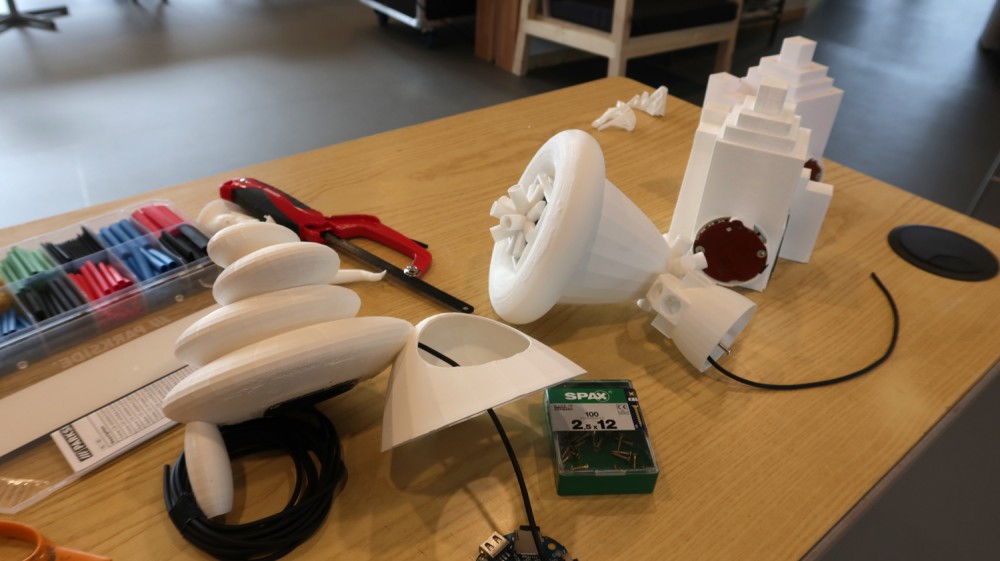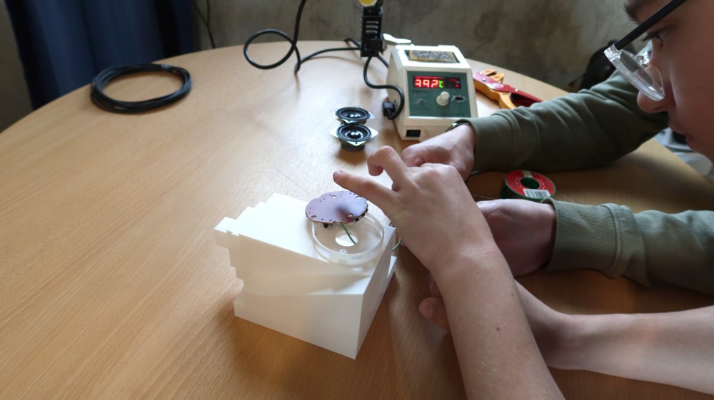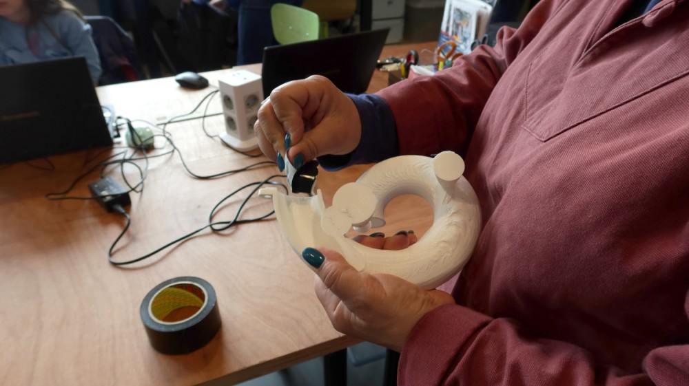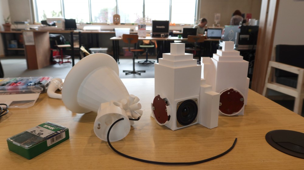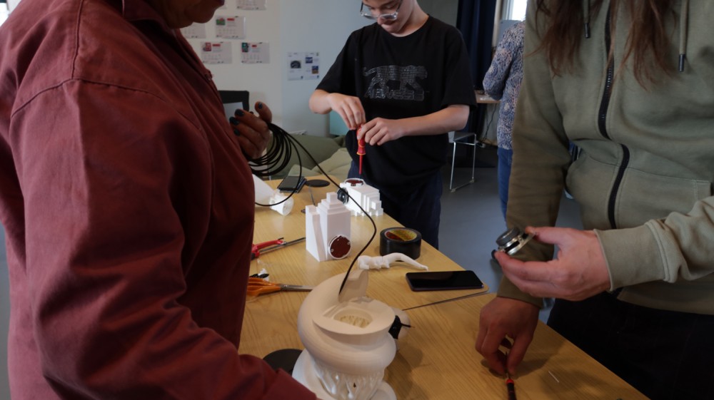 Ateliers de création de sculptures sonores avec des habitants et makers à Bain-de-Bretagne. Les participants ont pu concevoir, fabriquer et assembler une sculpture contenant une enceinte et un lecteur mp3 bluetooth.