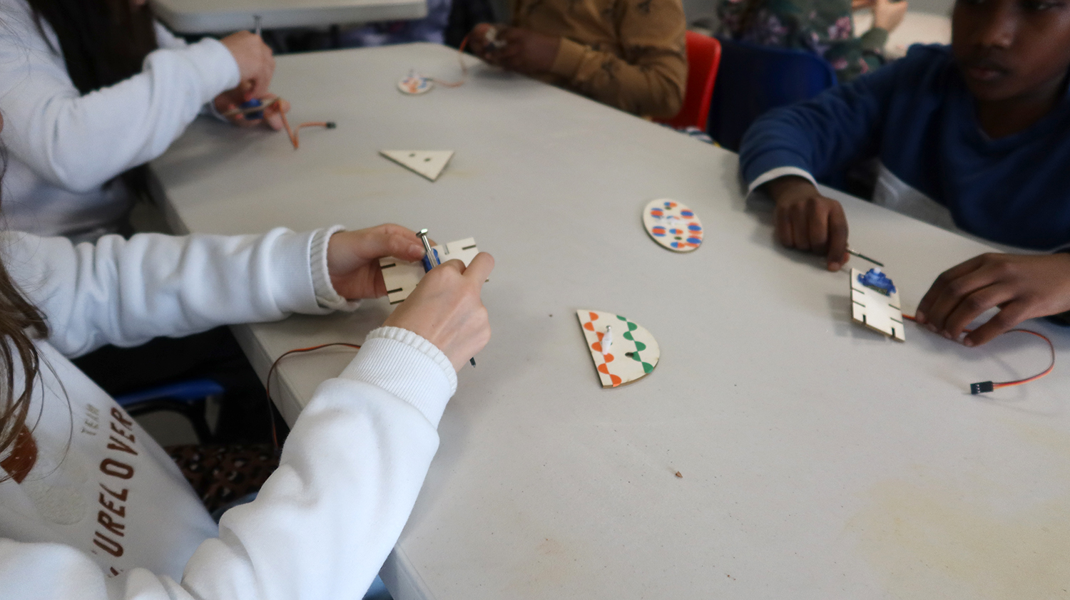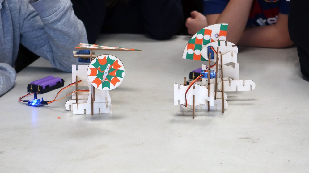 Ateliers de création de sculptures mécatroniques graphiques et cinétiques avec 3 classes de CM1-CM2 des écoles d'Iffendic, Montfort-sur-Meu et Tremeuleuc.