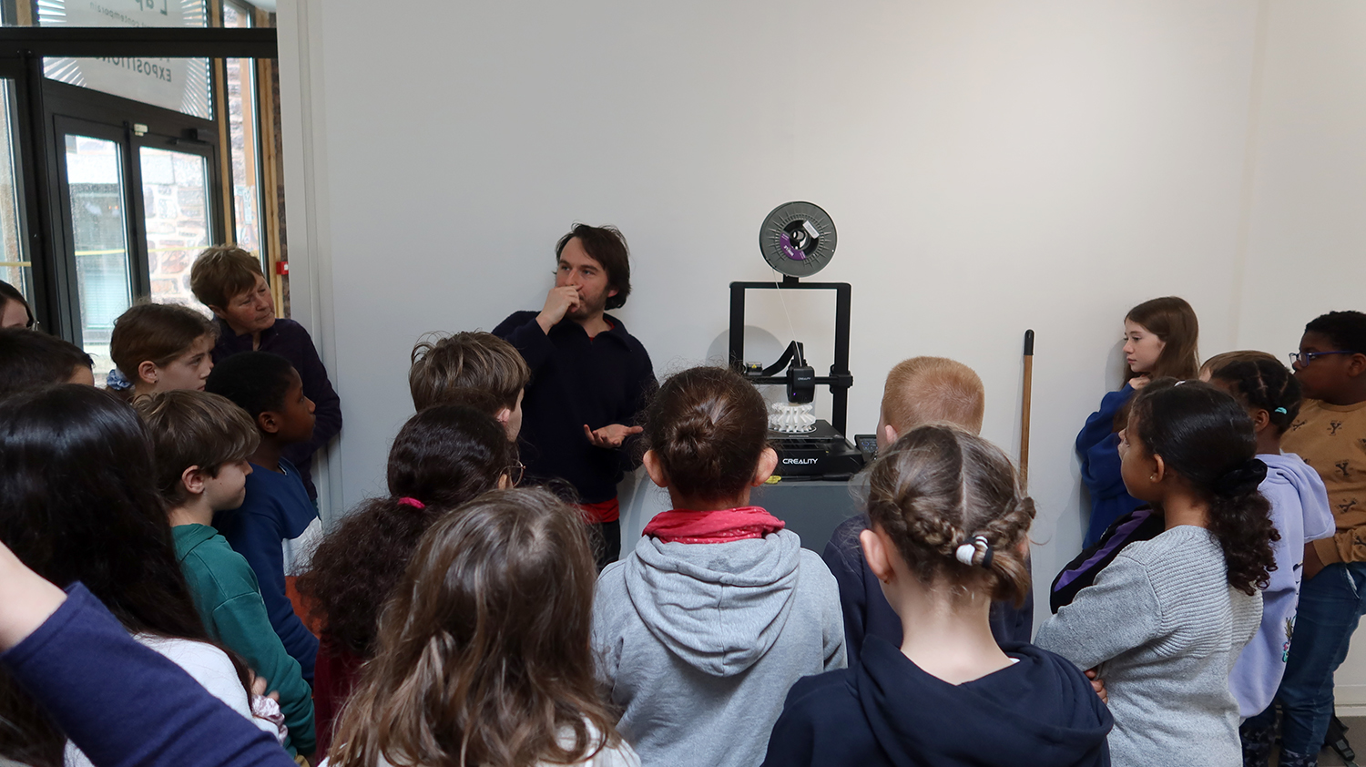 Les élèves ont pu visité la salle d'exposition pendant le montage en cours et le lieu de résidence des artistes à l'Aparté.