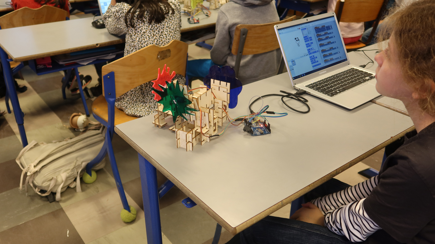 - programmation de scénarios de mouvement des moteurs de la sculpture sur le logiciel Scratch