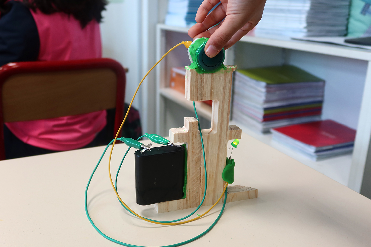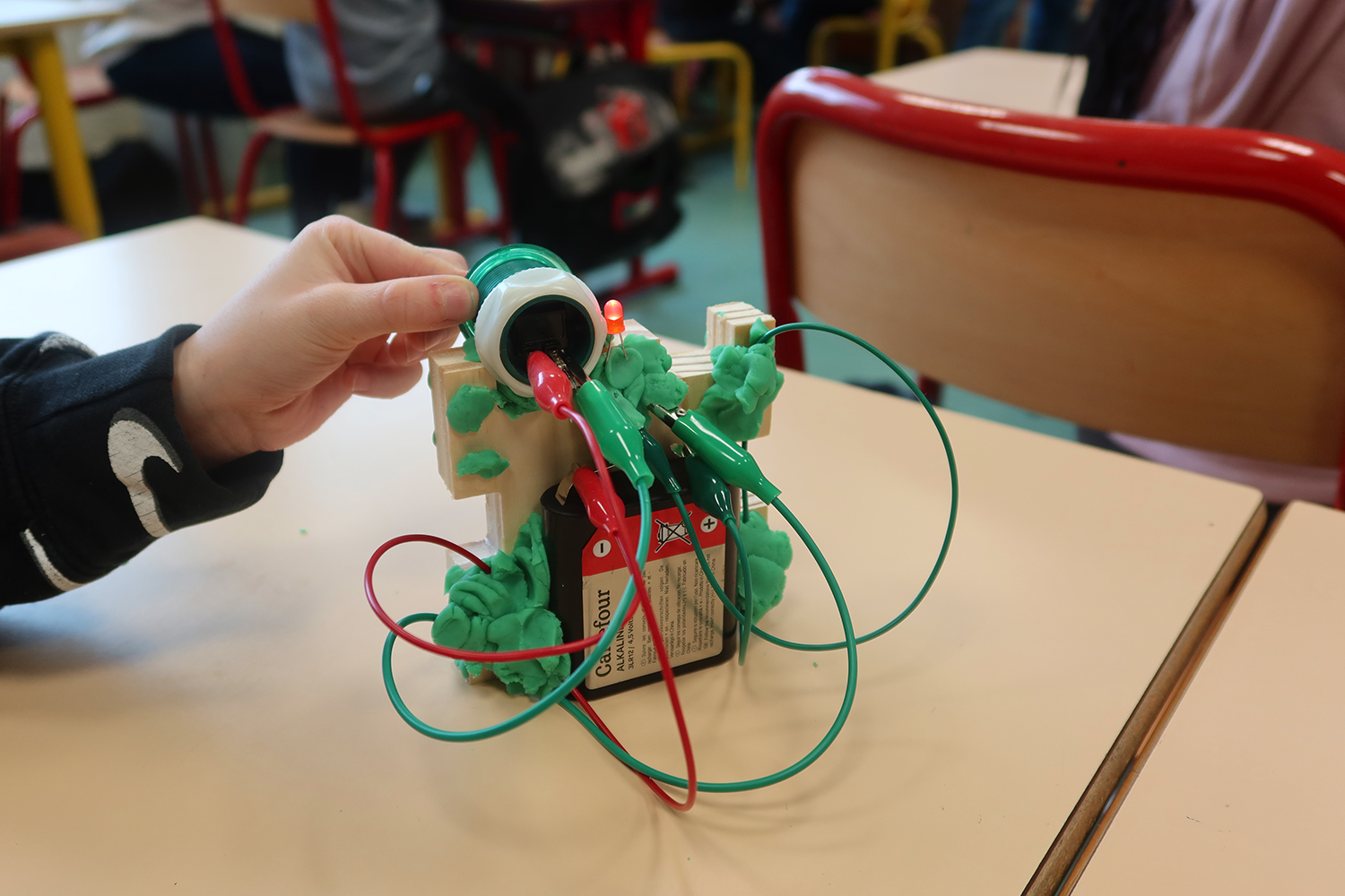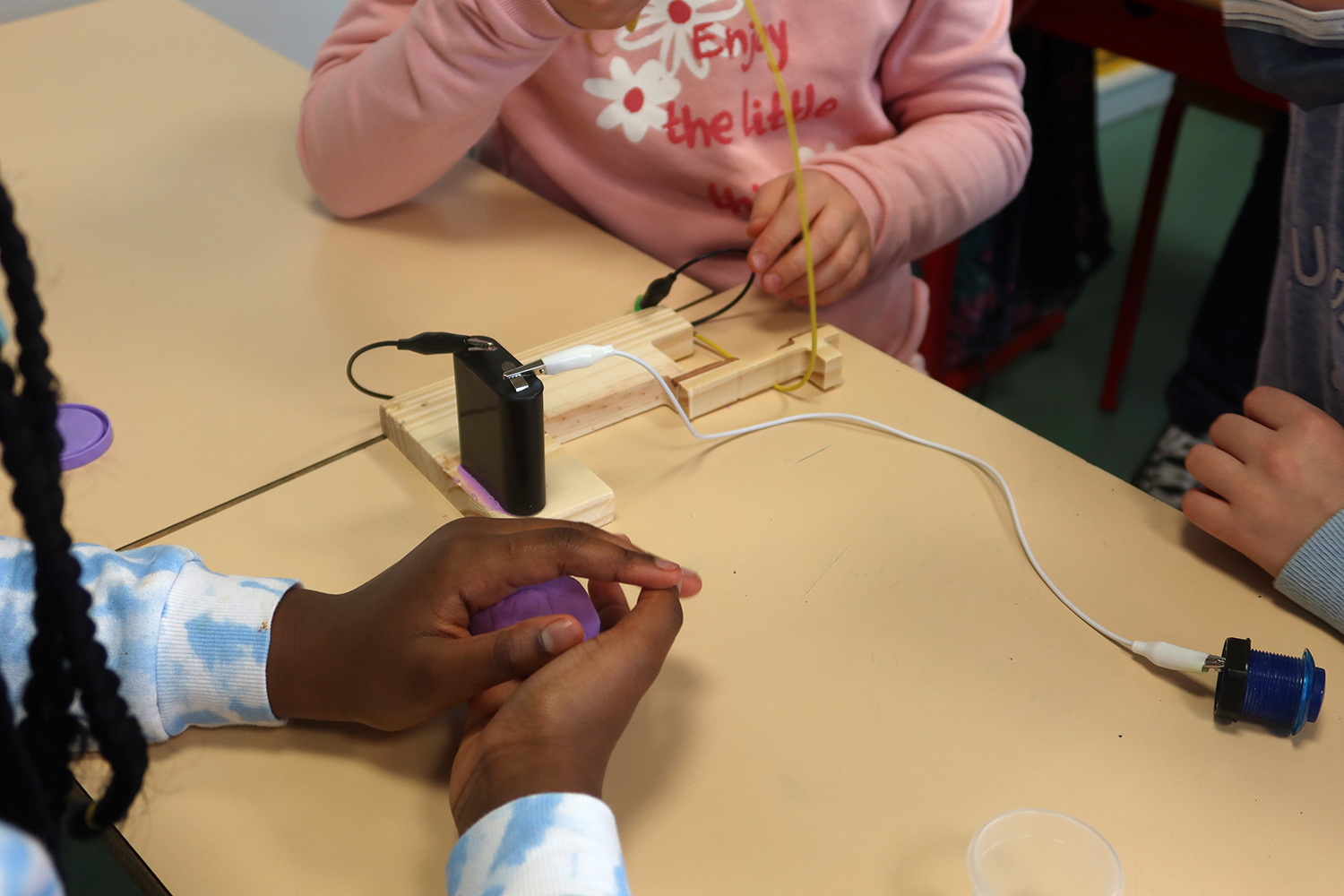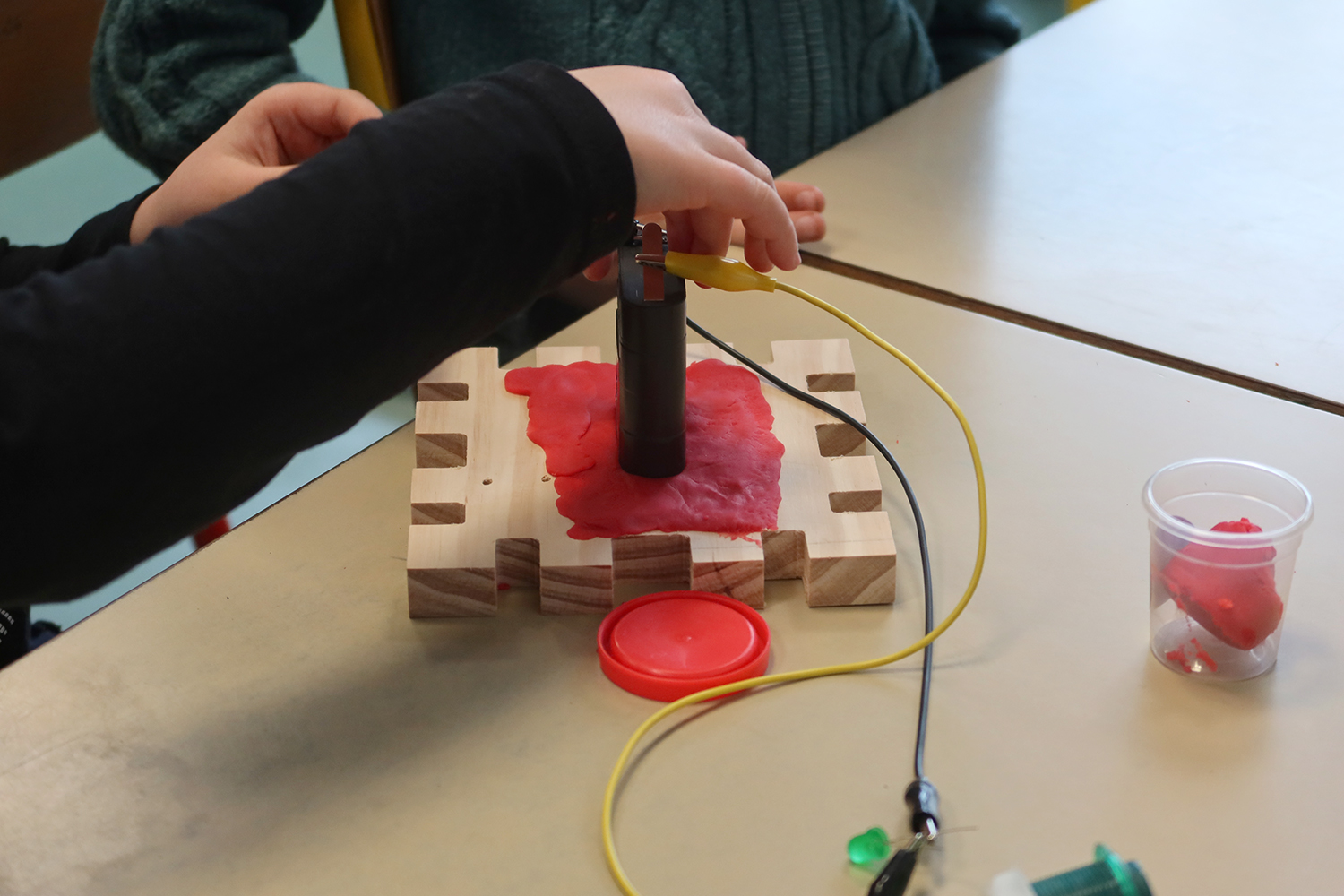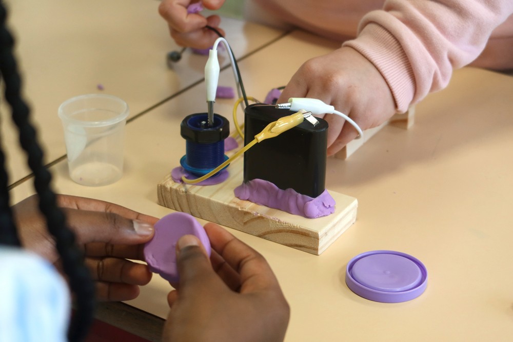Atelier de création de sculptures électronique en bois et pâte à modeler :