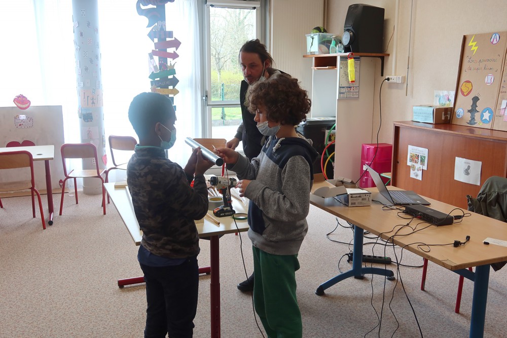 - découverte et amplification de sonorités différentes d'objets et matières du quotidien