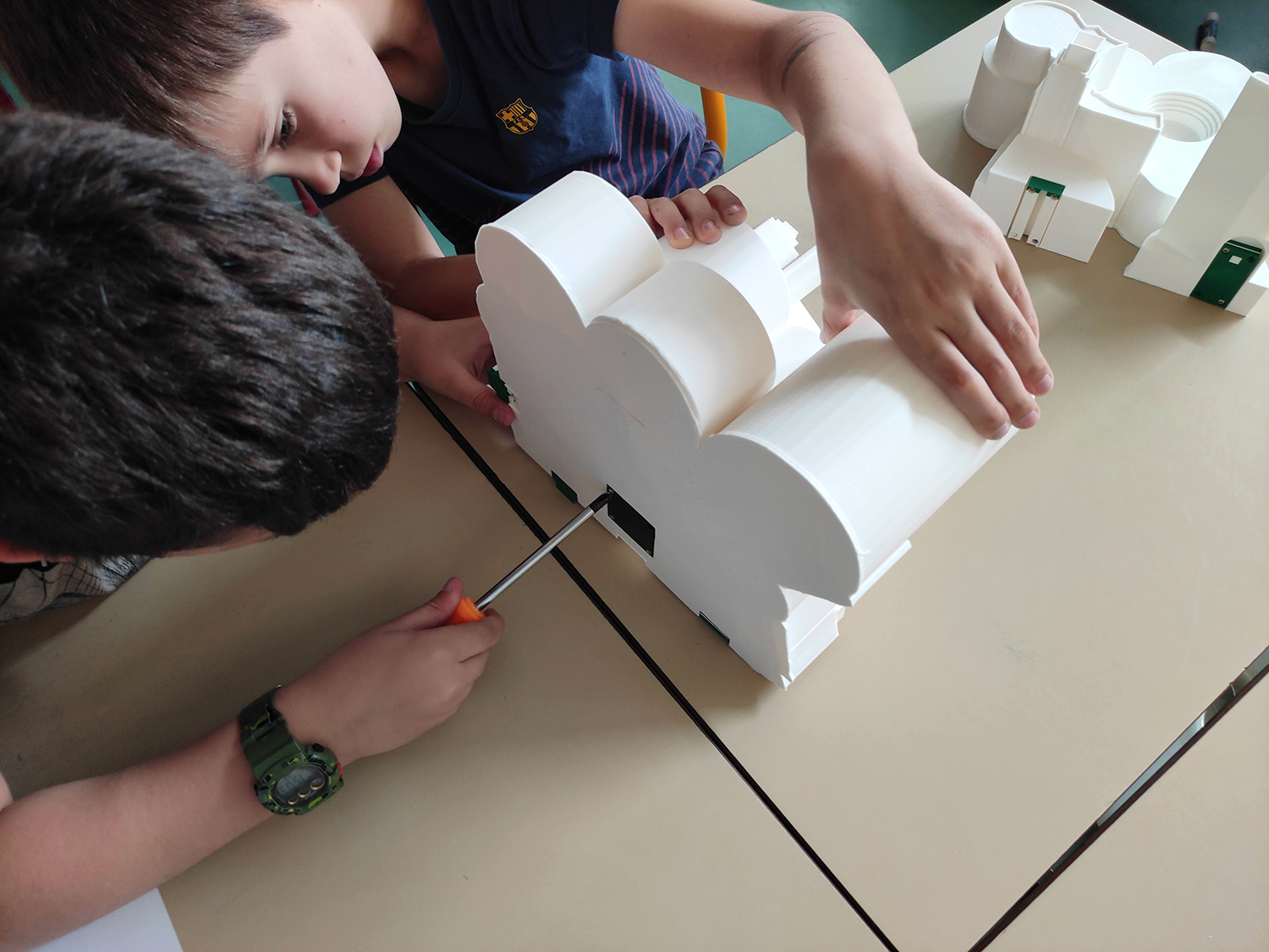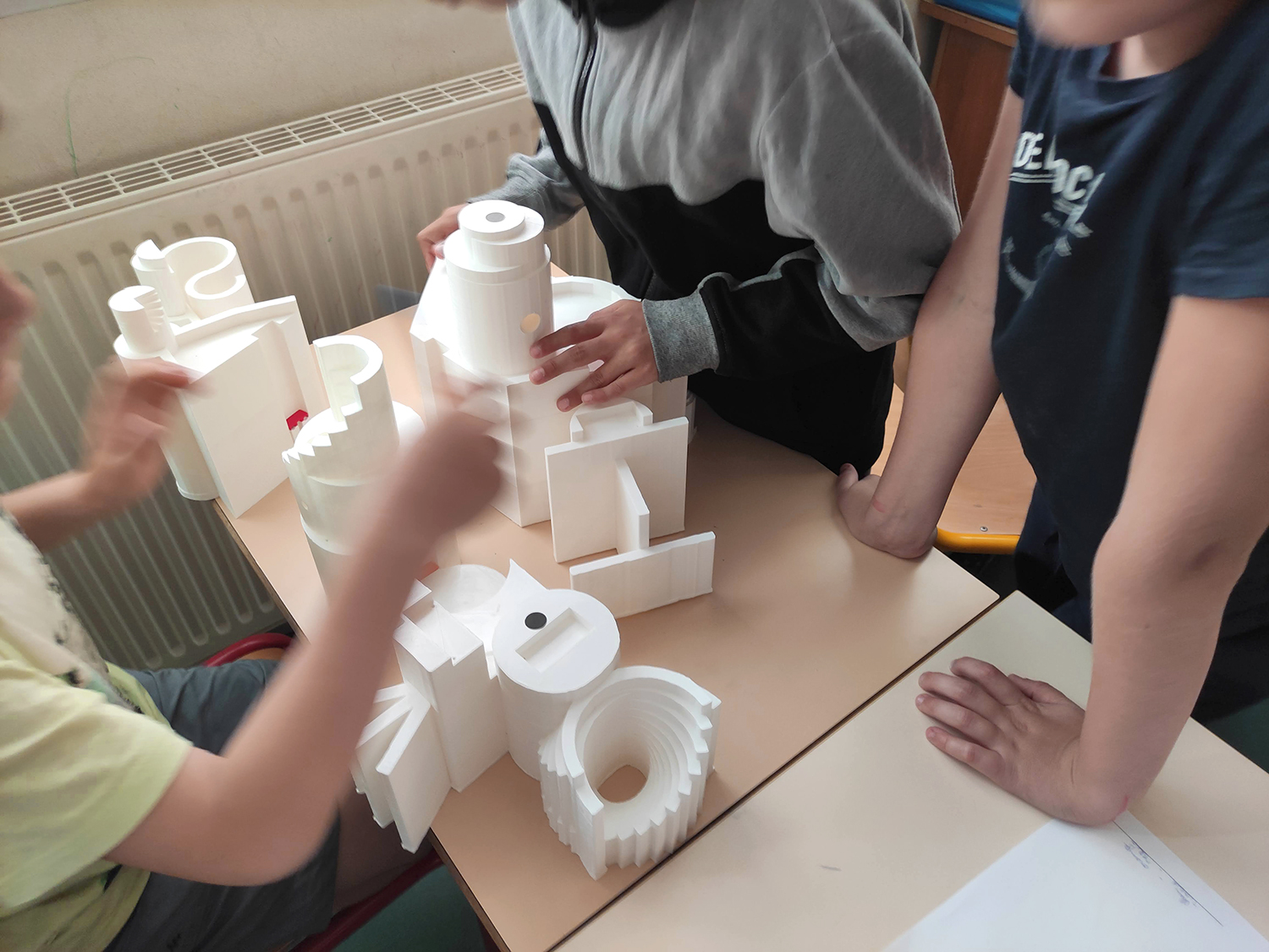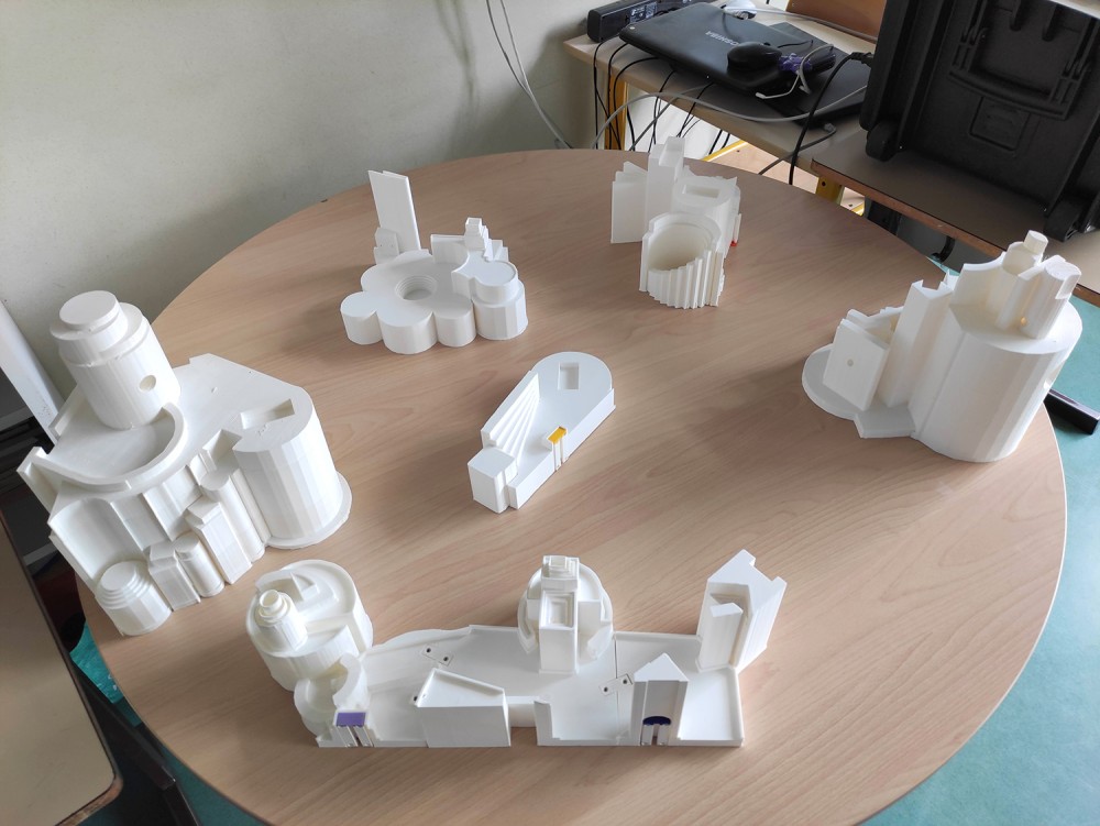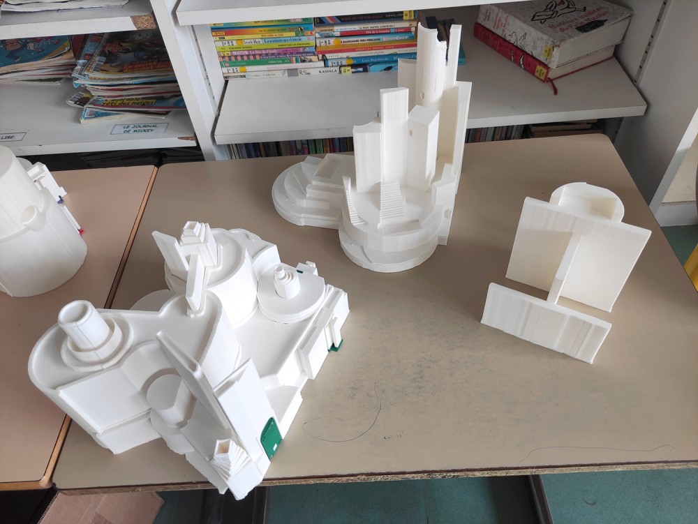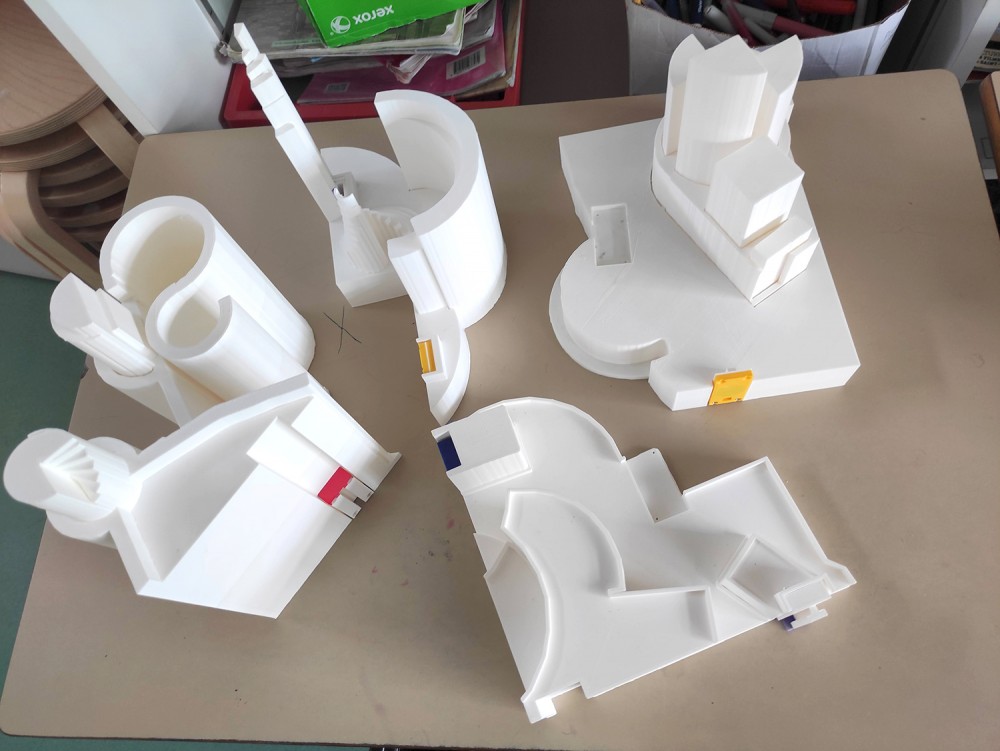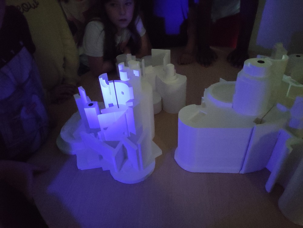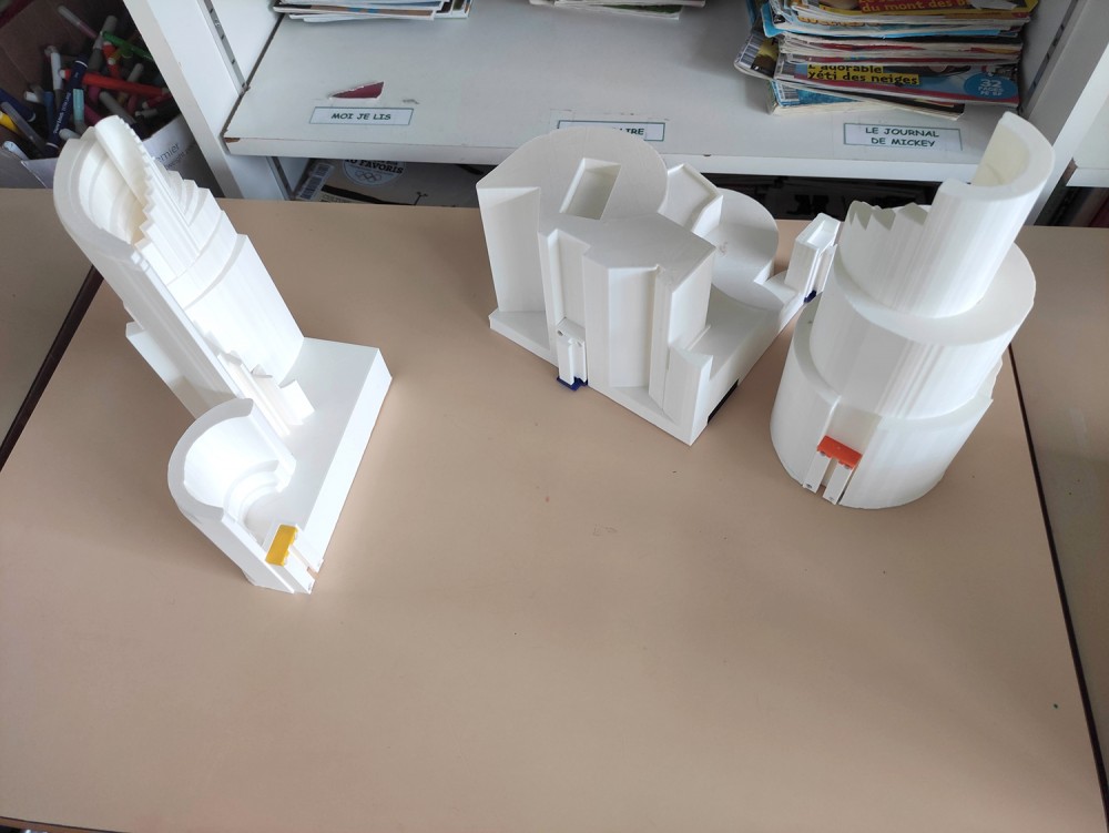 - assemblage des sculptures imprimées en 3D, intégration de la puce RFID et test de scénographie