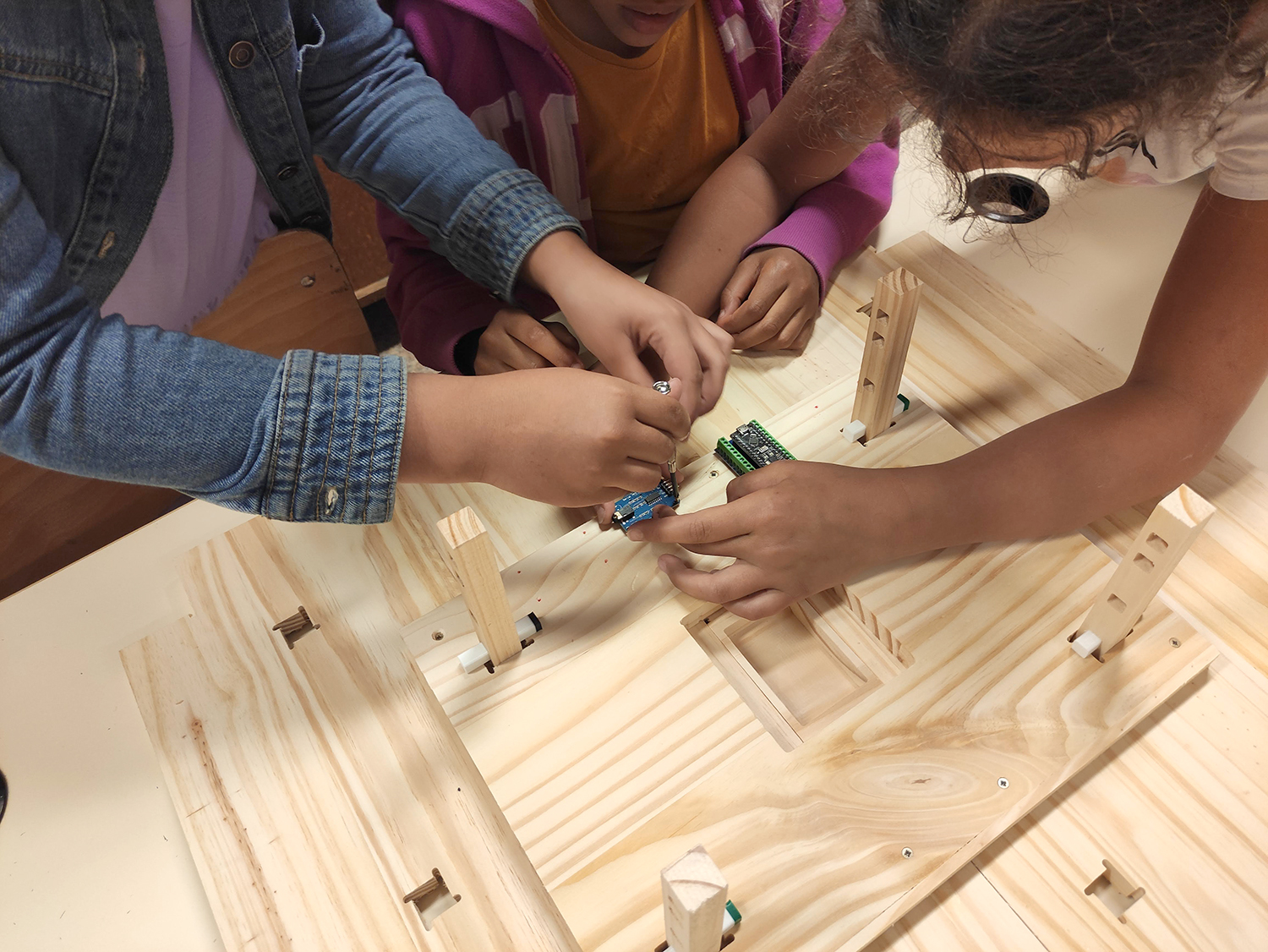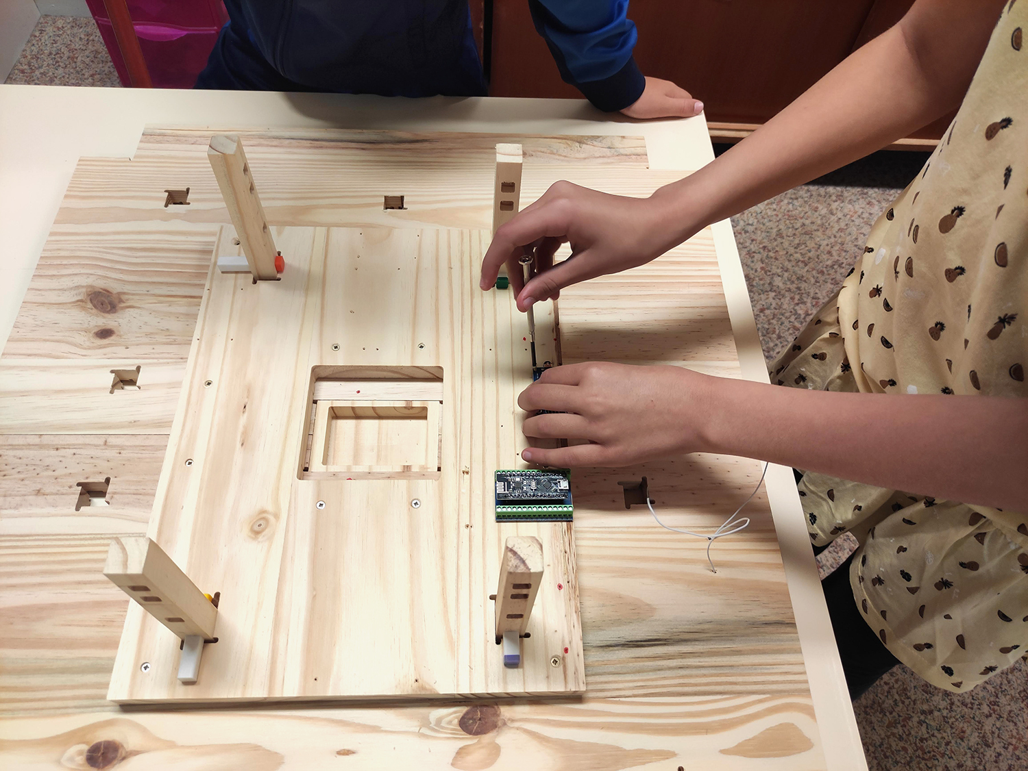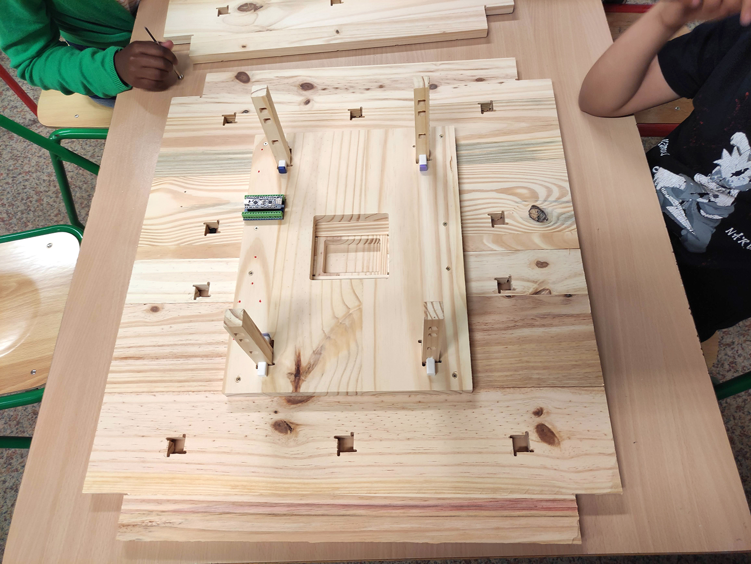 - assemblage des composants électroniques sur les socles : lecteur RFID, carte aduino nano RF, lecteur MP3, ampli et pile