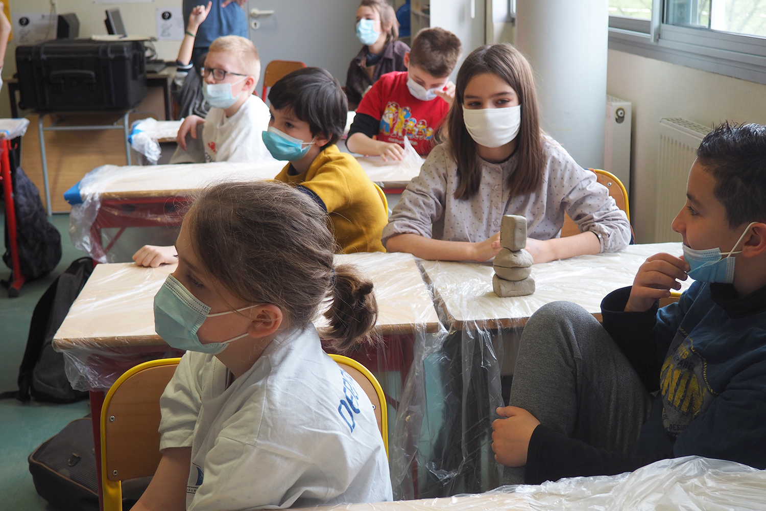 - modelage en argile de formes géométriques simples (boule, cône, cylindre, pavé)