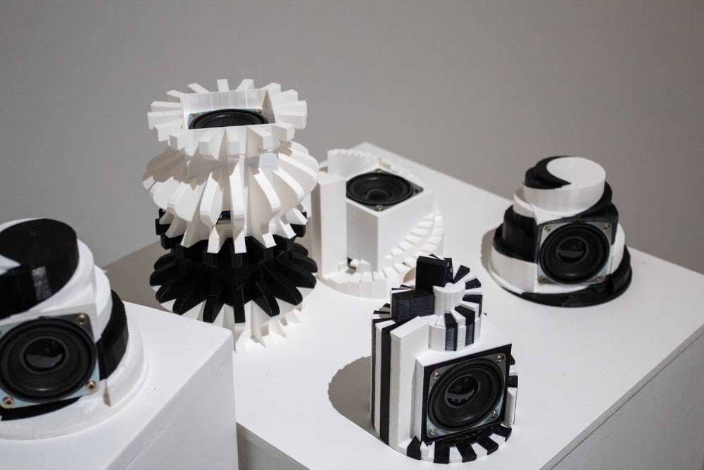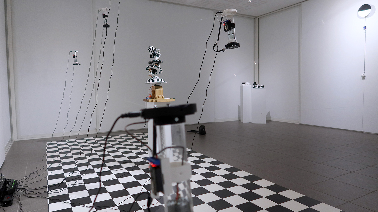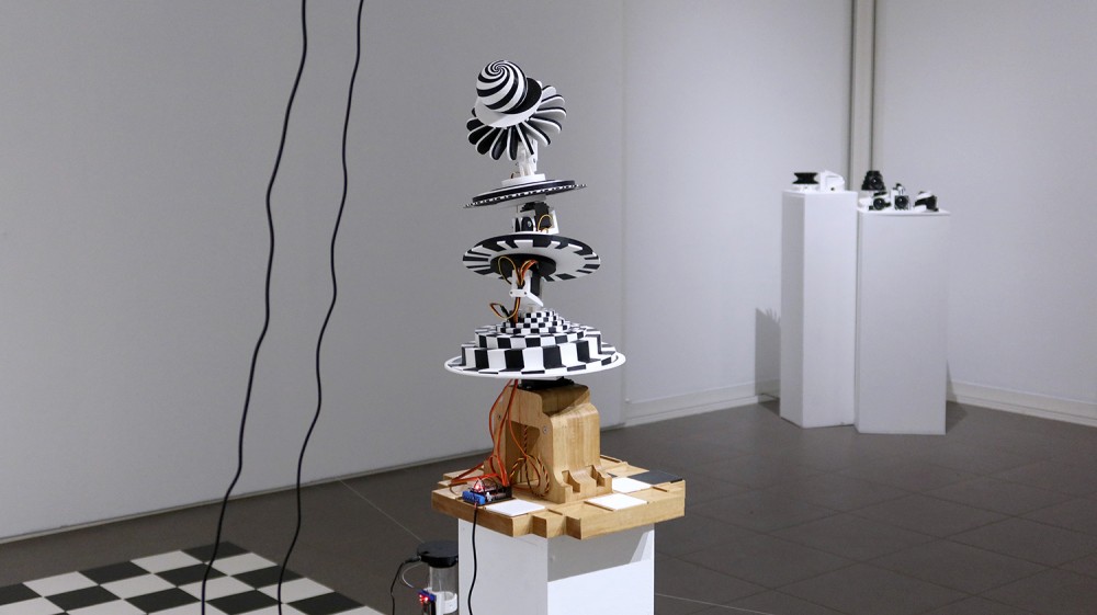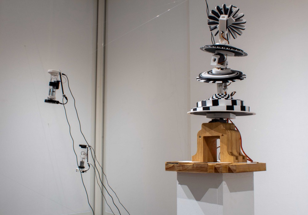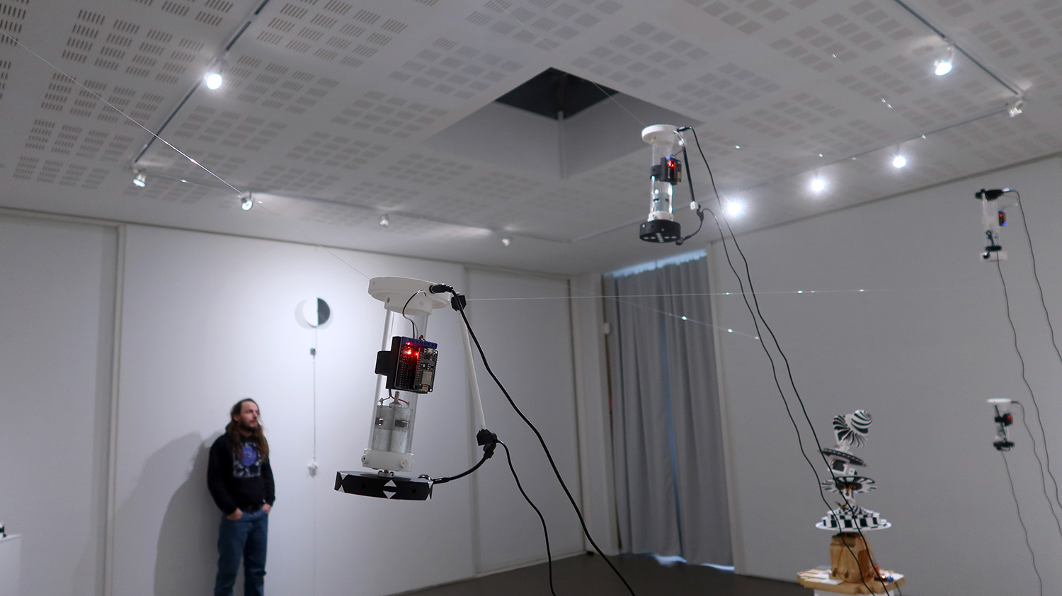 Exposition in-situ Les Flûtes et le Fou à L'Aparté à Iffendic qui fait à suite à 2 mois de résidence dans le lieu. L'exposition présente deux nouvelles créations : Les Flûtes et Le Fou actionnées par L'Horloge ainsi qu'une série d'éditions/sculptures sonores intitulée Les Phonotons, série 5.