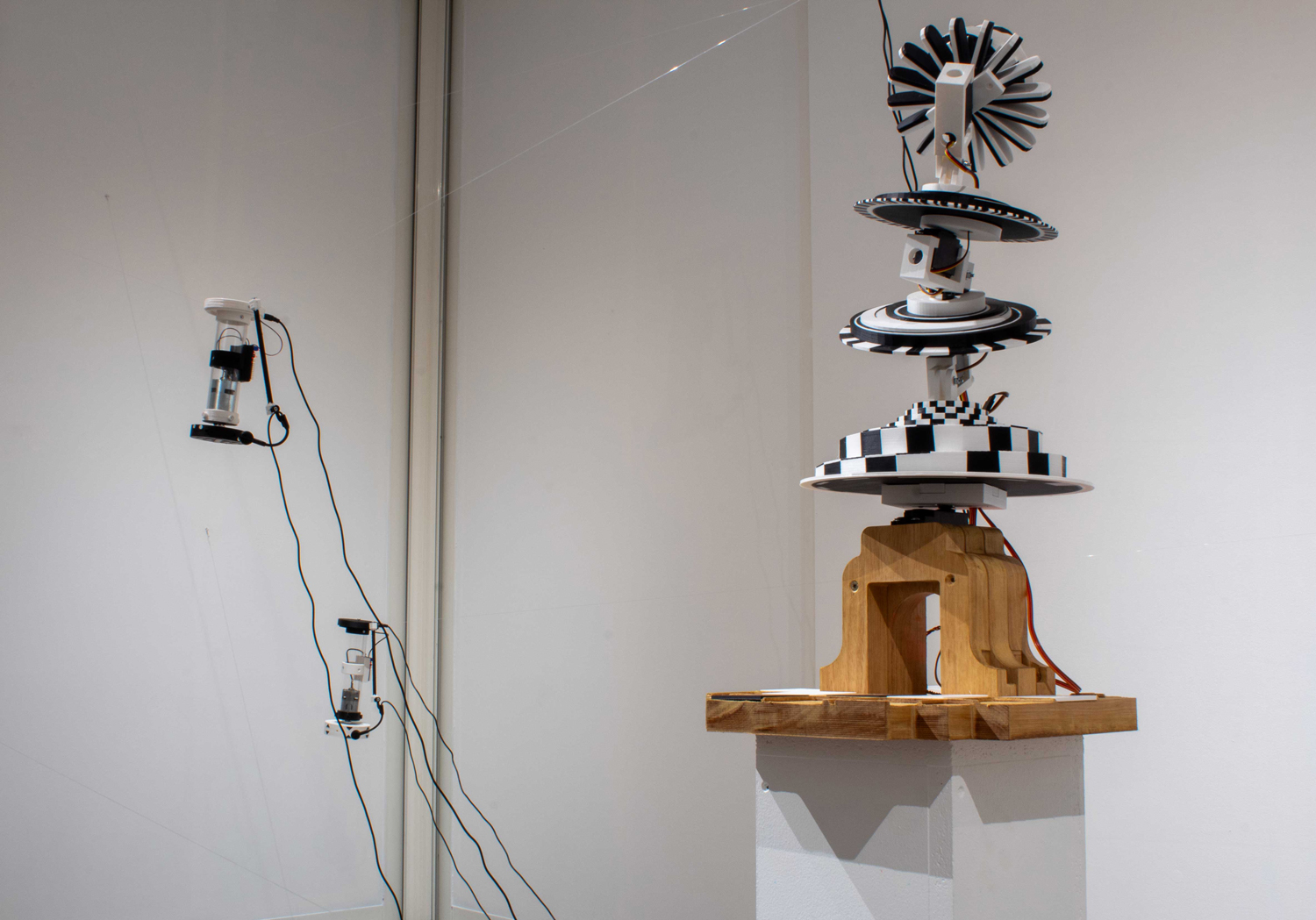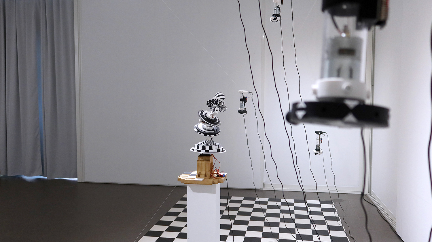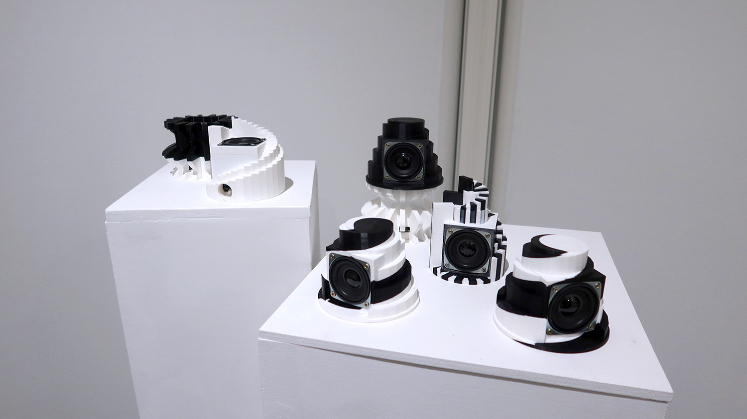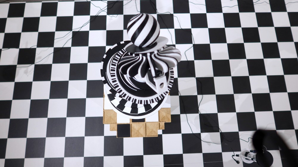 Exposition in-situ Les Flûtes et le Fou à L'Aparté à Iffendic qui fait à suite à 2 mois de résidence dans le lieu. L'exposition présente deux nouvelles créations : Les Flûtes et Le Fou actionnées par L'Horloge ainsi qu'une série d'éditions/sculptures sonores intitulée Les Phonotons, série 5.