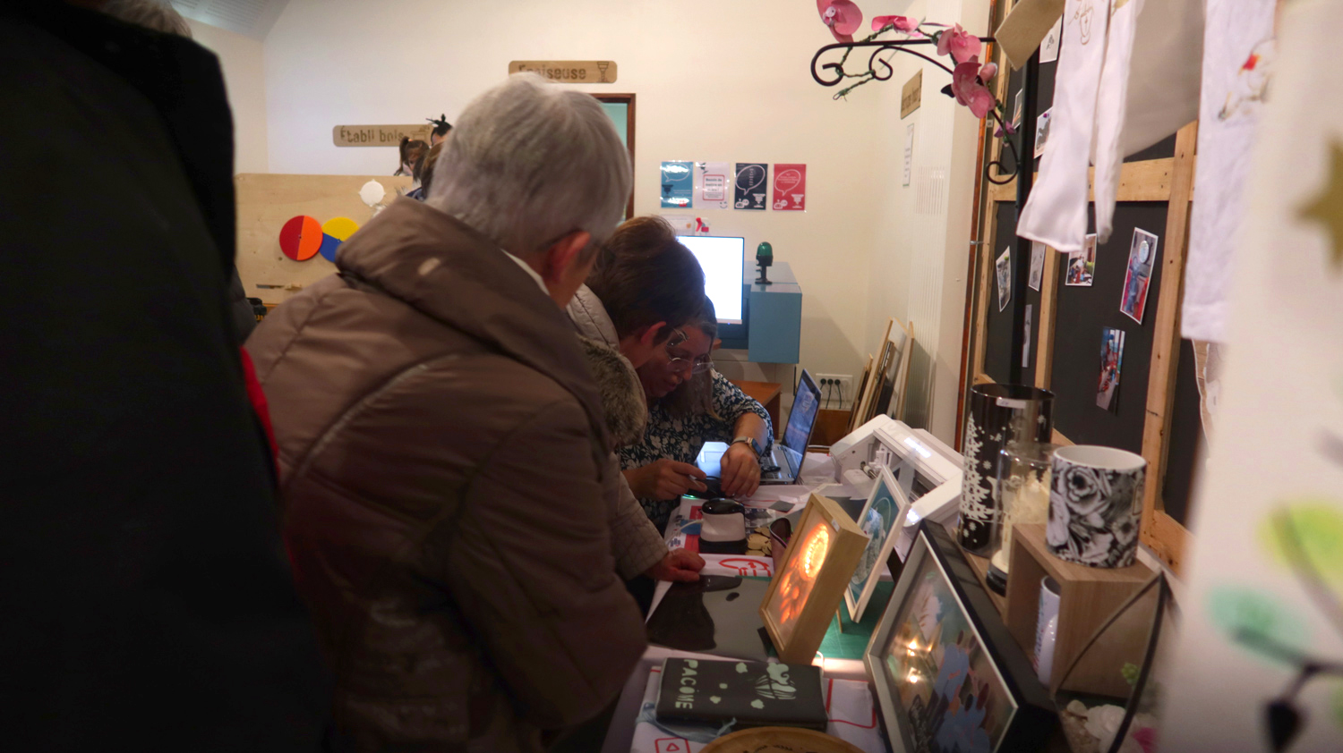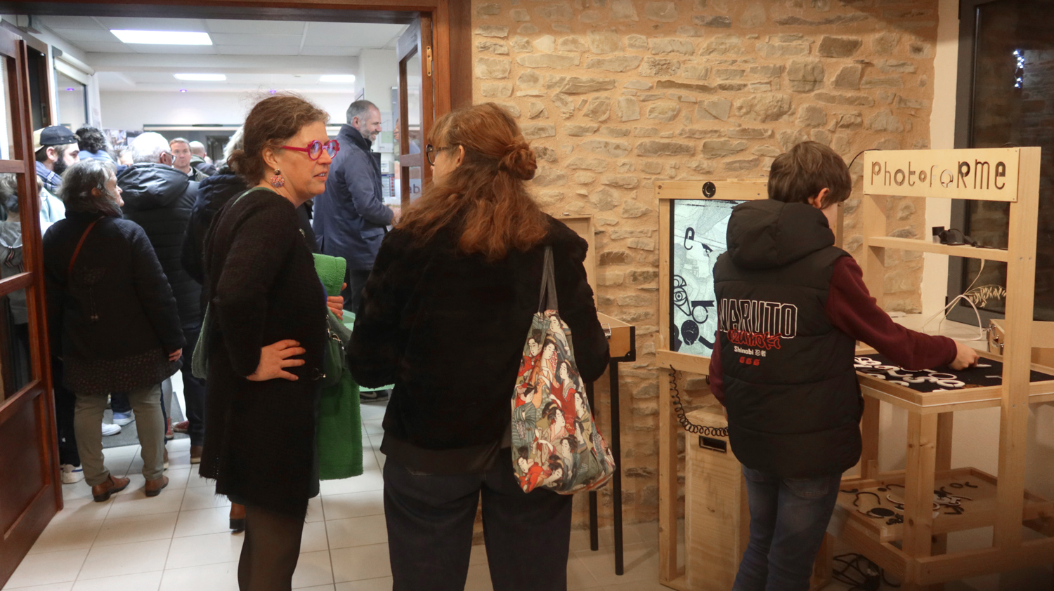 Présentation et exposition d'oeuvres pendant l'inauguration du fablab de Saulnières.