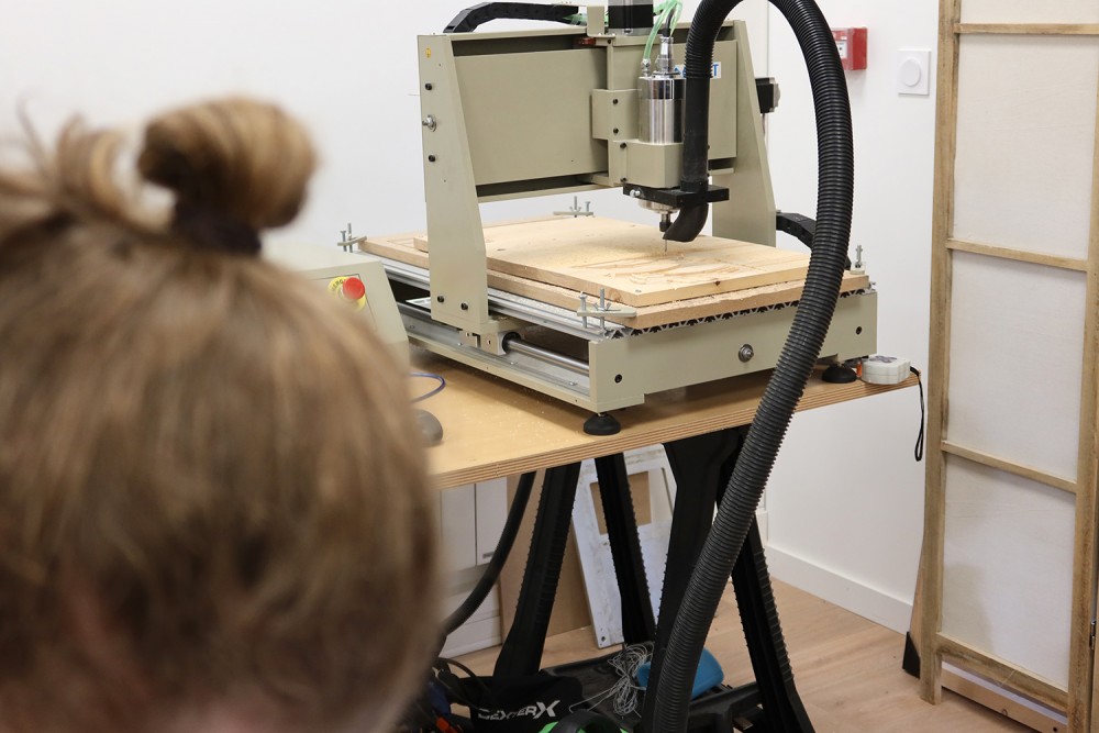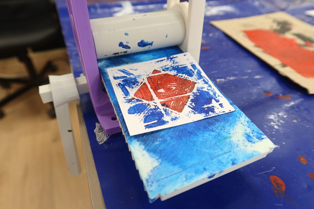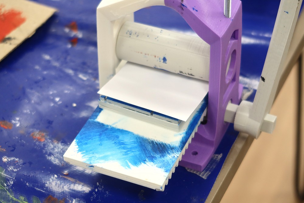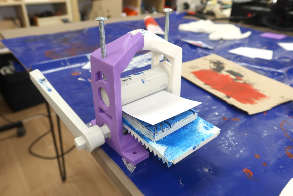 Conception et fabrication à partir d'un modèle d'une presse à imprimer par Gurvan Leroy en service civique à l'association.