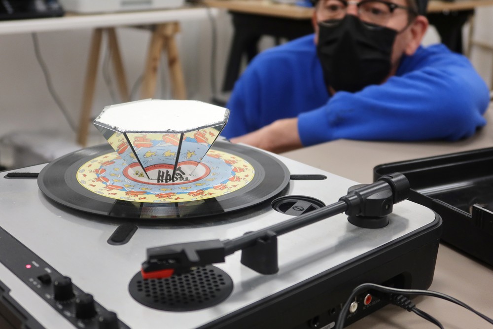 Le Nitoscope, part 1 •Accompagnement artistique Mercredi 2 février 2022 Artlab Création d'un premier prototype pour Le Nitoscope, un objet DIY pour disques animés, avec Nito (compagnie NiclouNiVis). Audios et vidéos : nitoscope_premier_prototype.mp4