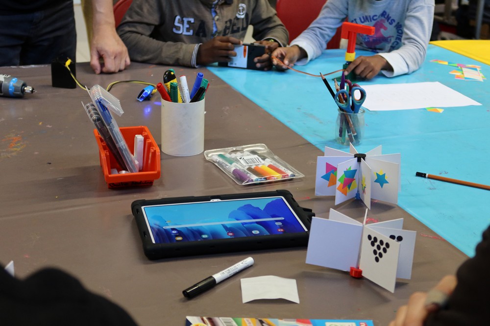 Ateliers de création des Mecagraffs avec un groupe d'enfants de l'accueil de loisirs Dominique savio :