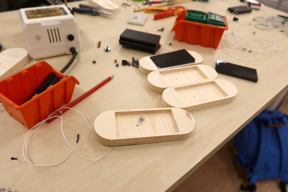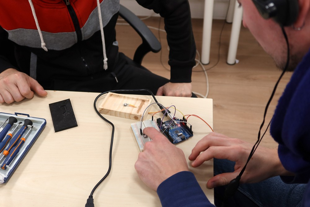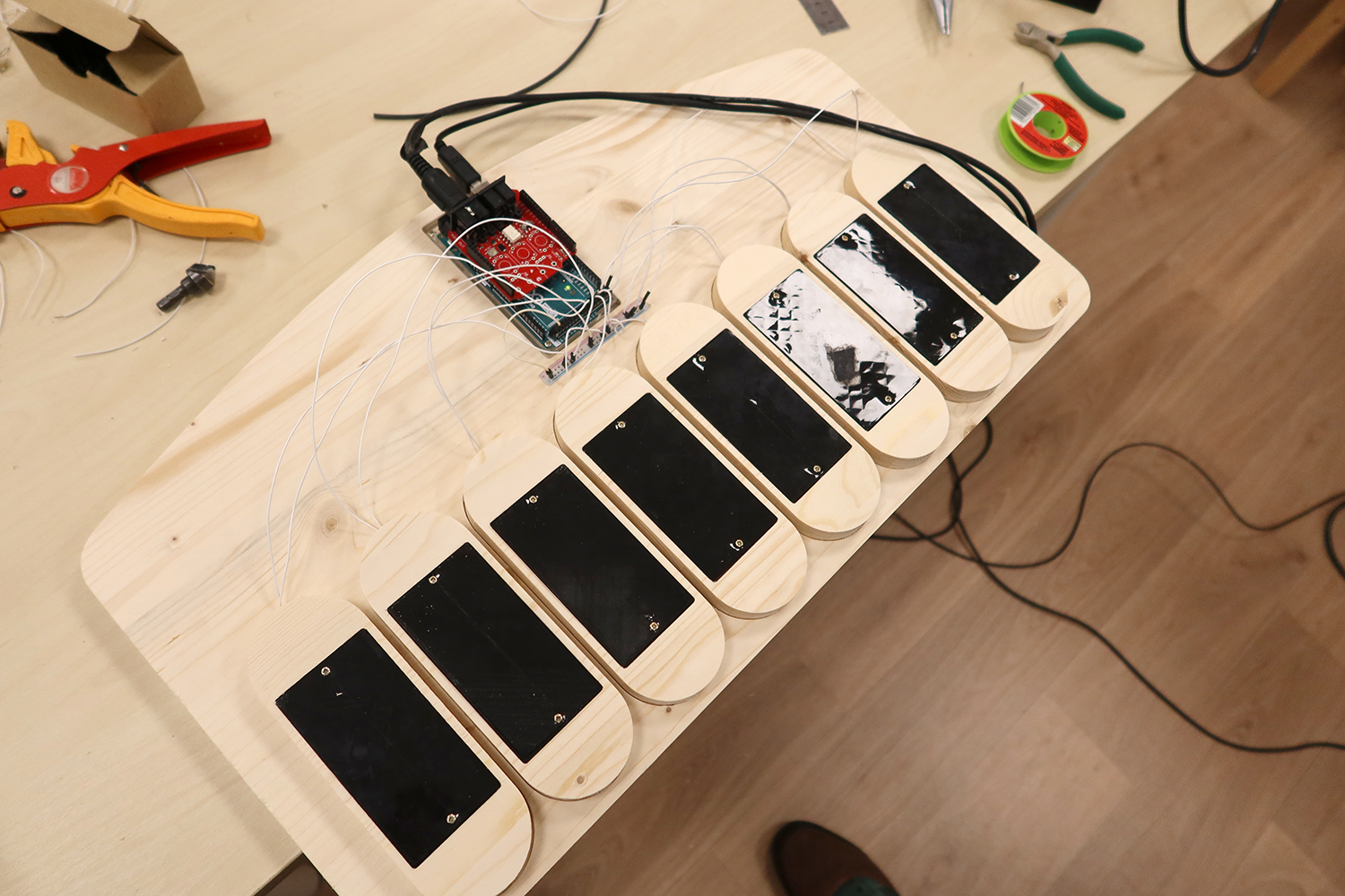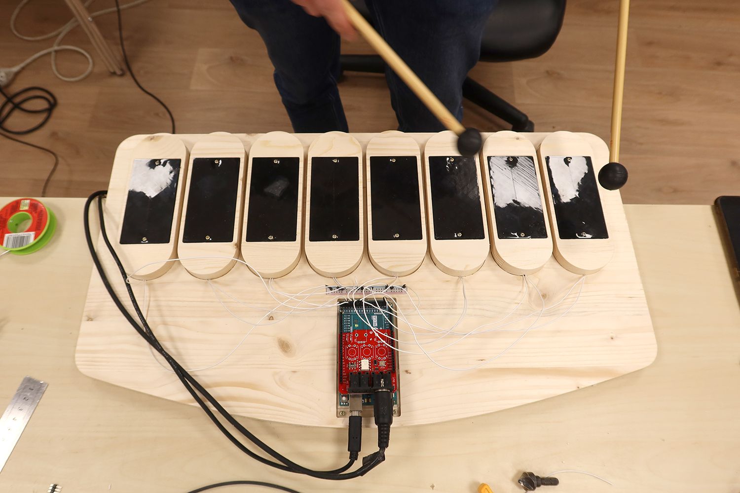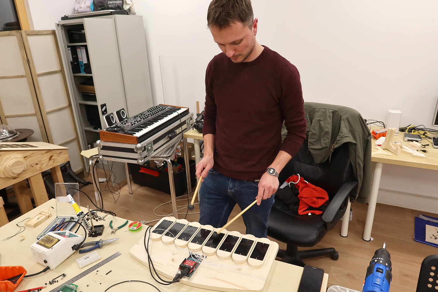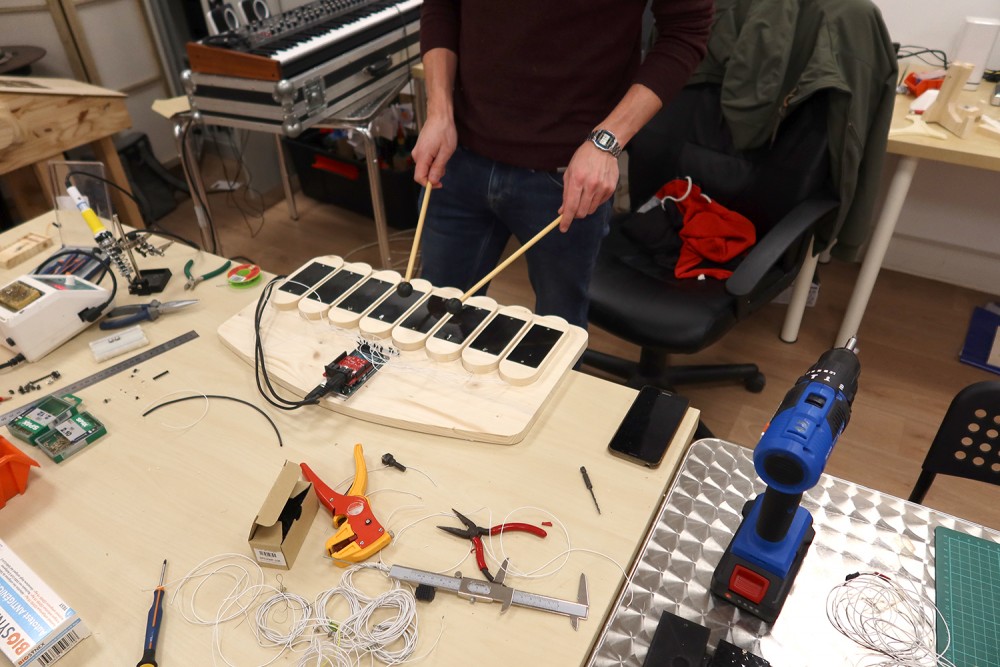 Création pendant une semaine d'un marimba électronique DIY avec le musicien Paul Dechaume.