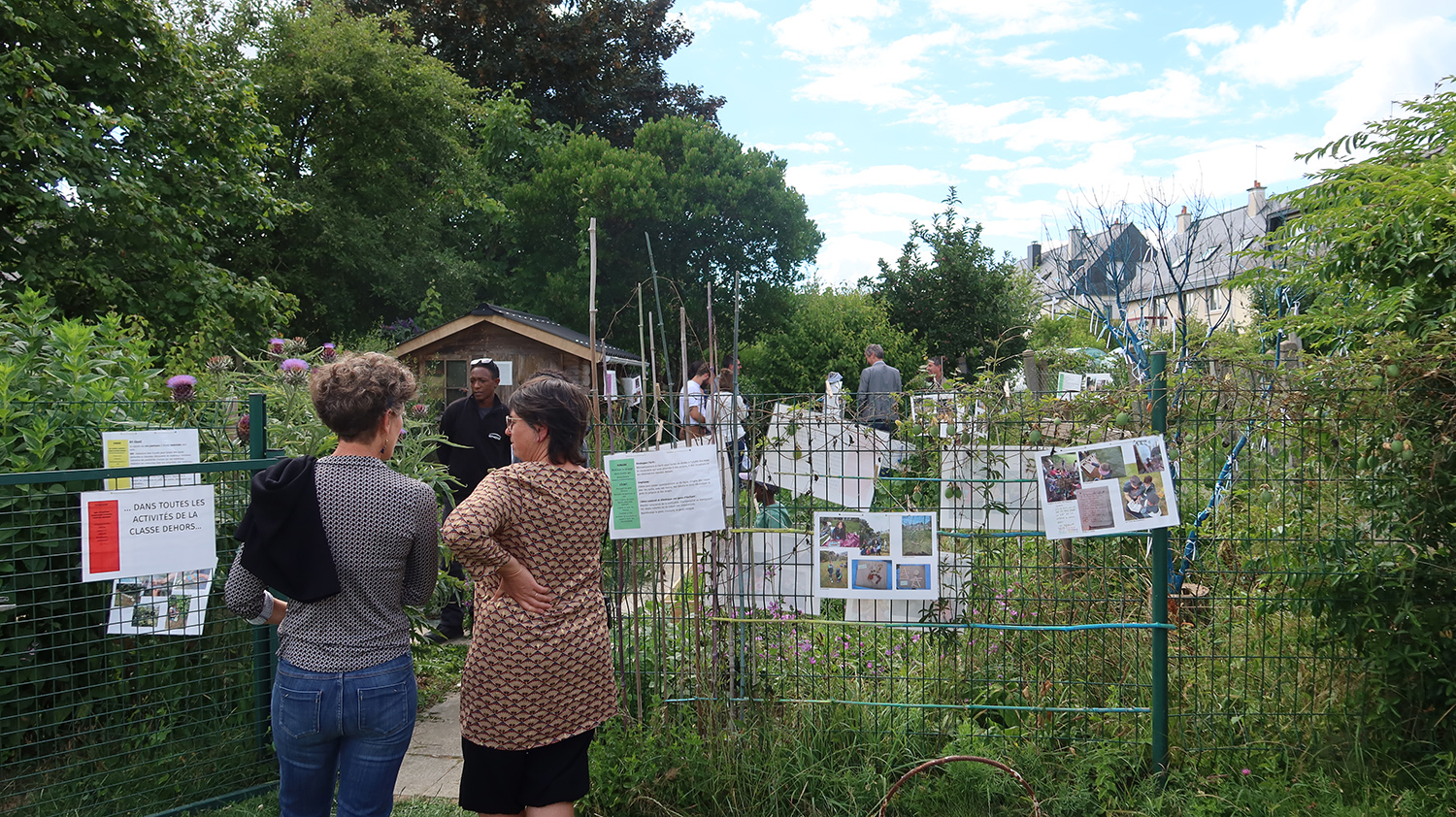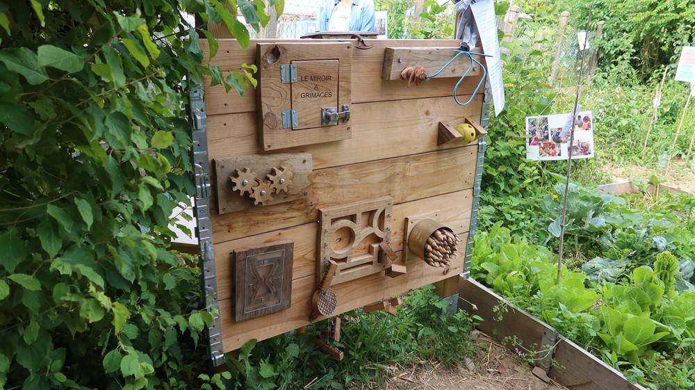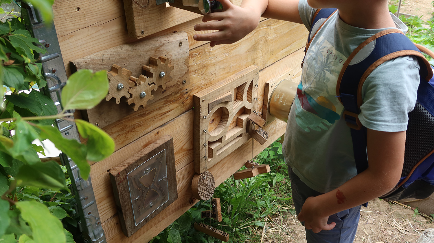 Restitution en présence des parents d'élèves du travail mené avec Sylvie Vappreau pour son projet La classe dehors. L'occasion de présenter le mur sensoriel dans le jardin partagé pédagogique, dont certains modules ont été créés avec Sylvie à l'artlab.