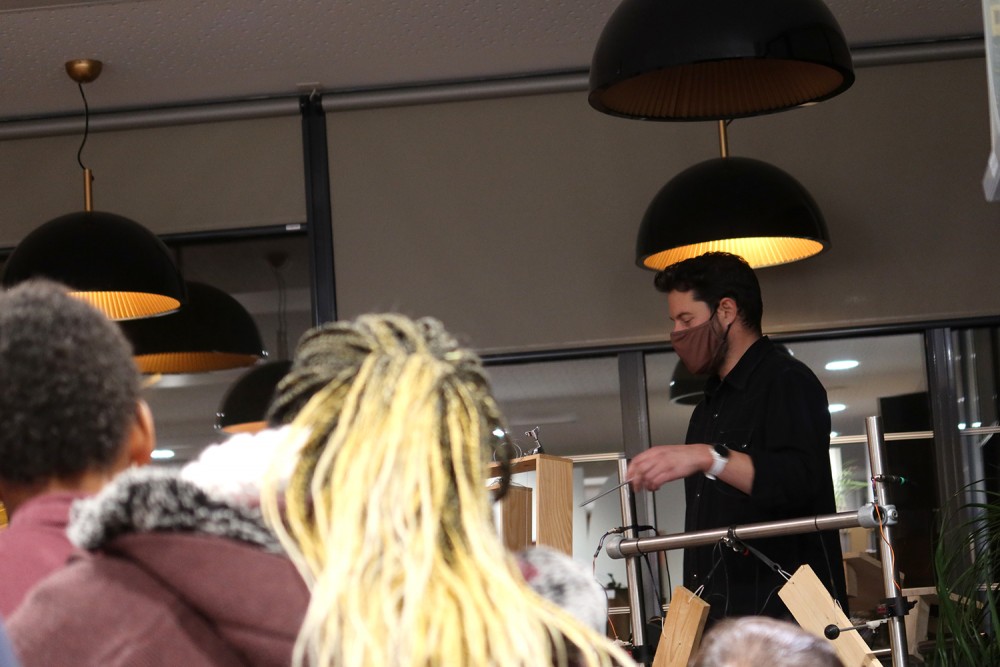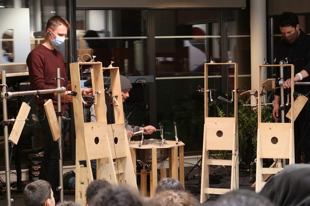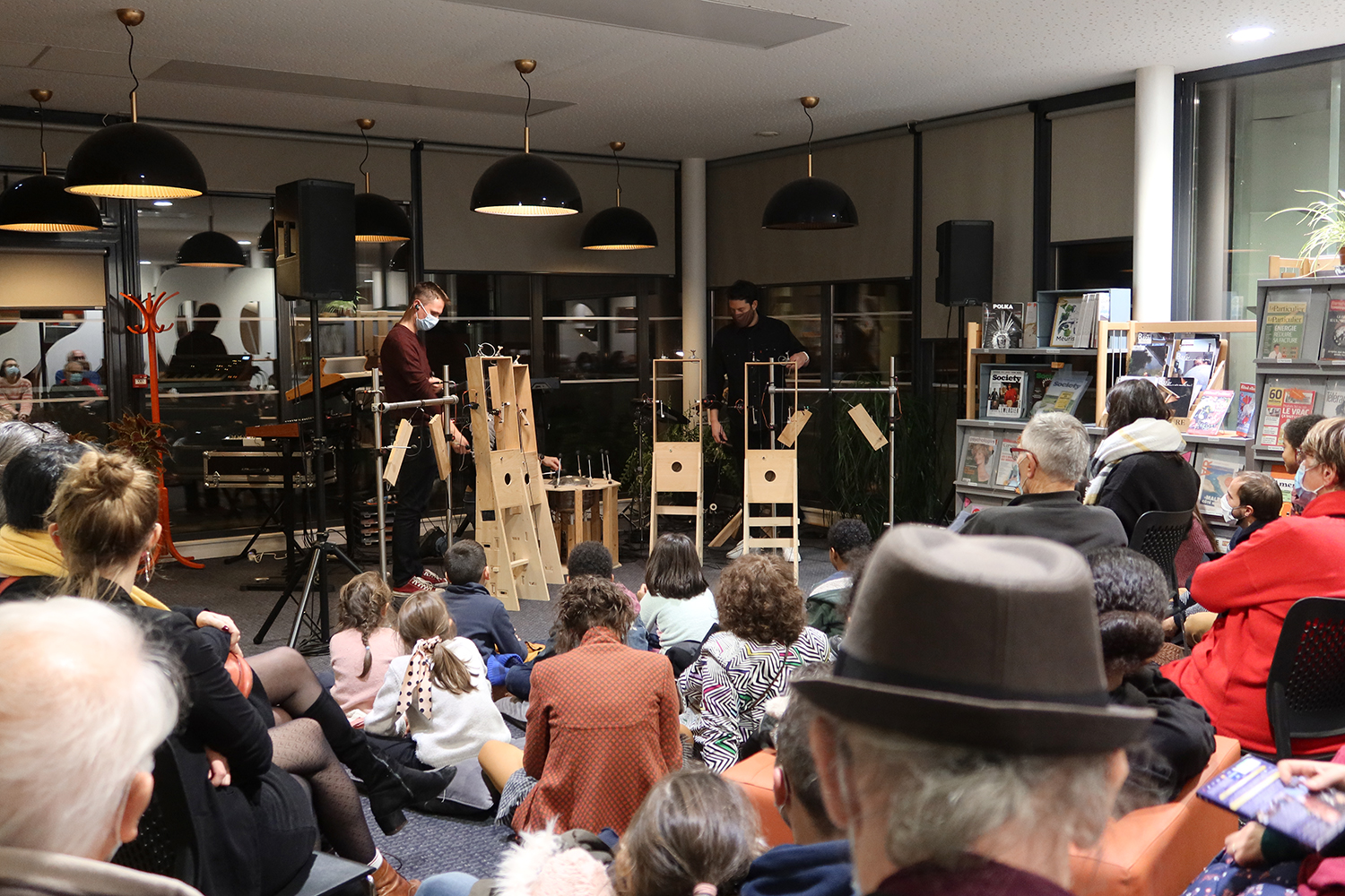 Concert de Playing With Machines pour l'inauguration à la médiathèque d'une micro-folie, musée numérique.