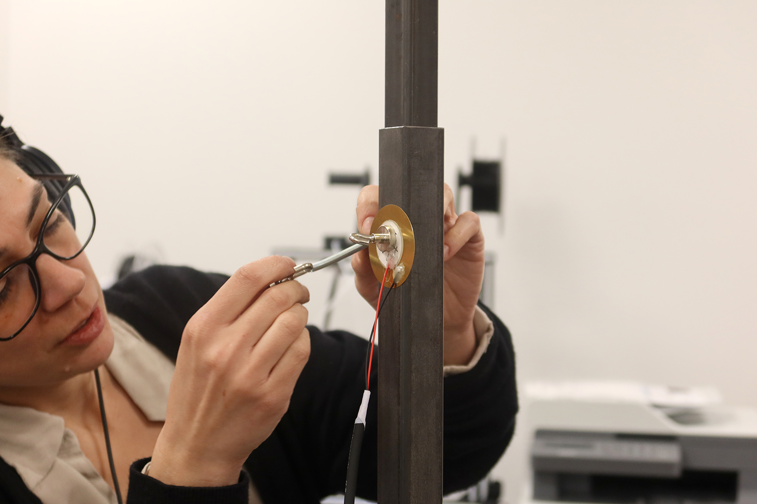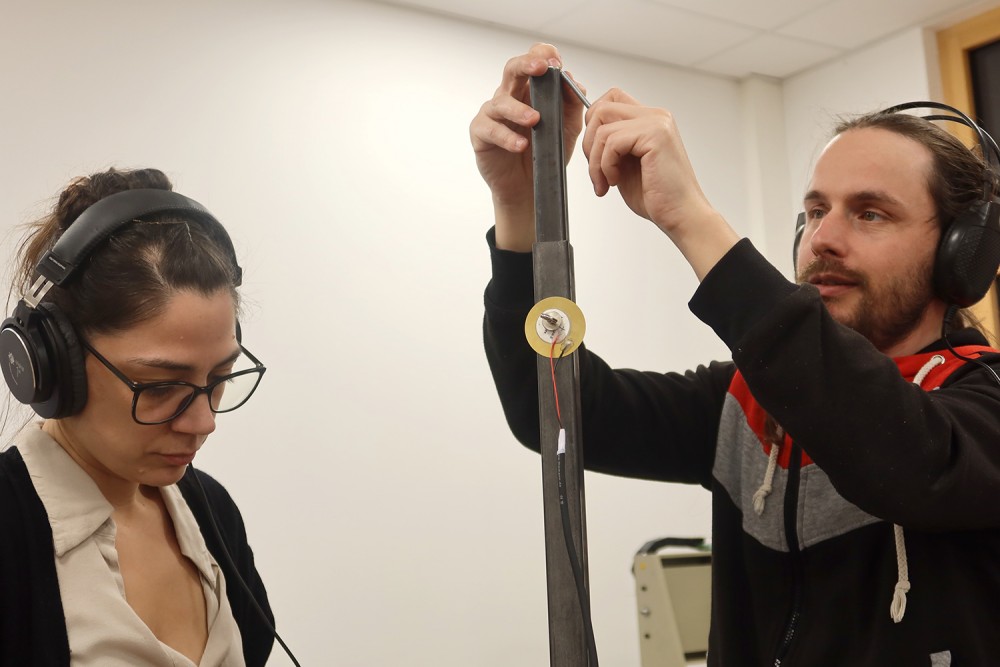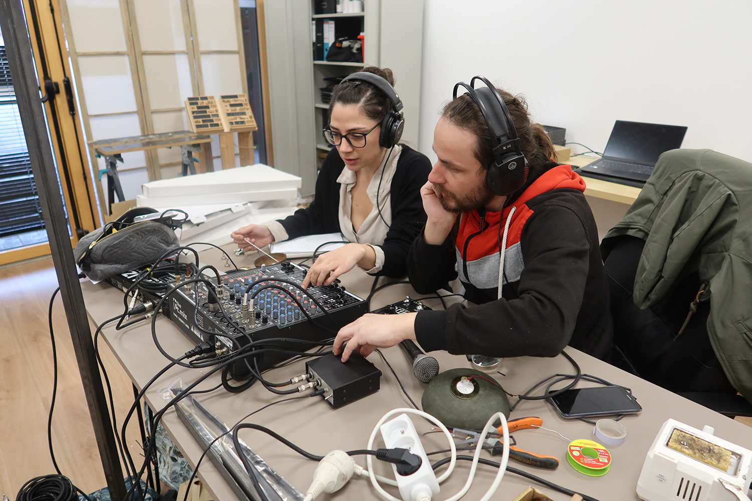 Résidence de Marie-Serge Coïc •Résidence d'artiste Du jeudi 10 février au vendredi 18 février 2022 Artlab Expérimentation de captation sonore pour une installation cinétique en fil de cuivre argenté.