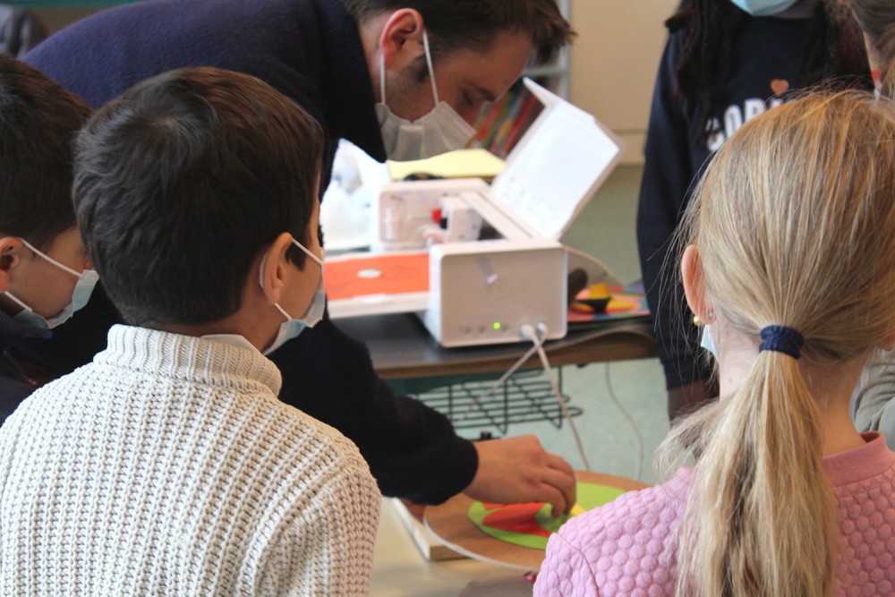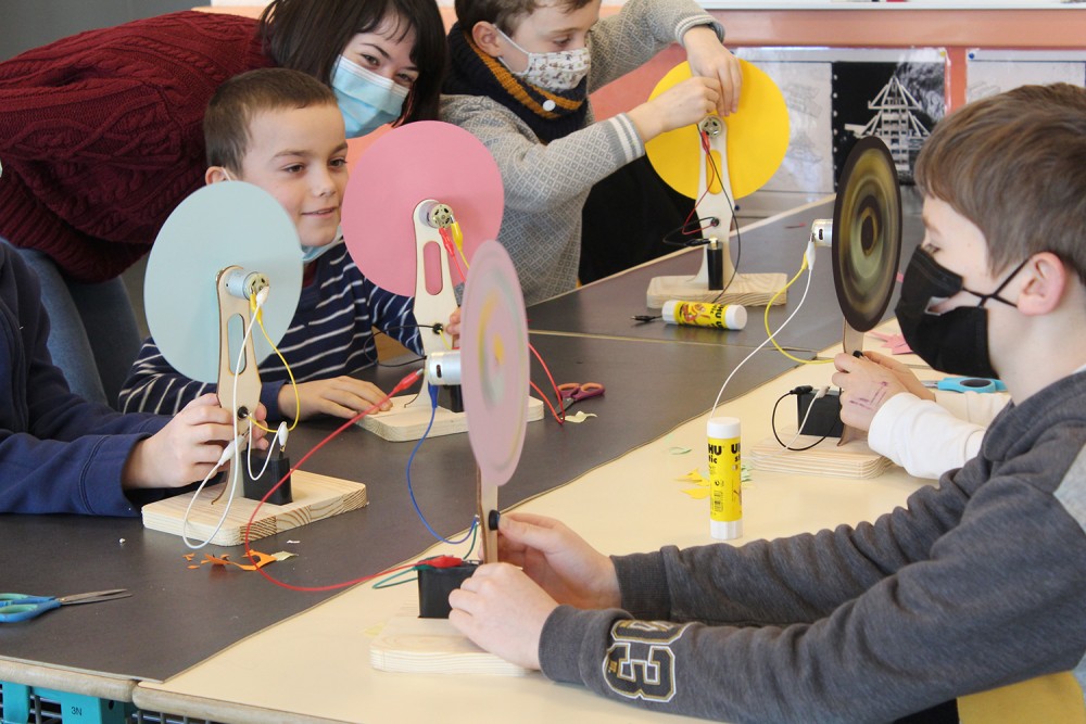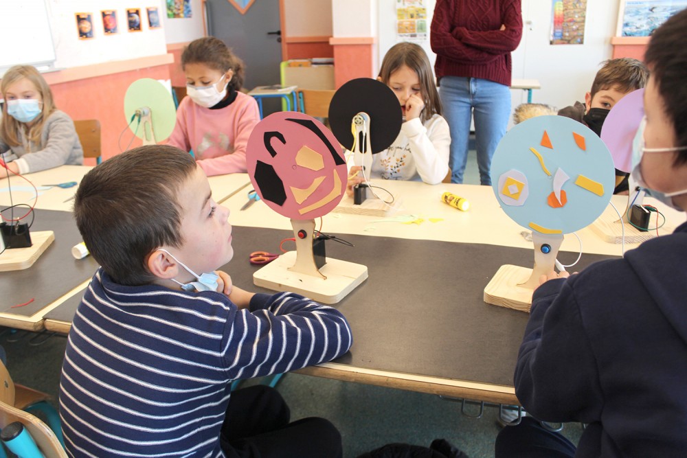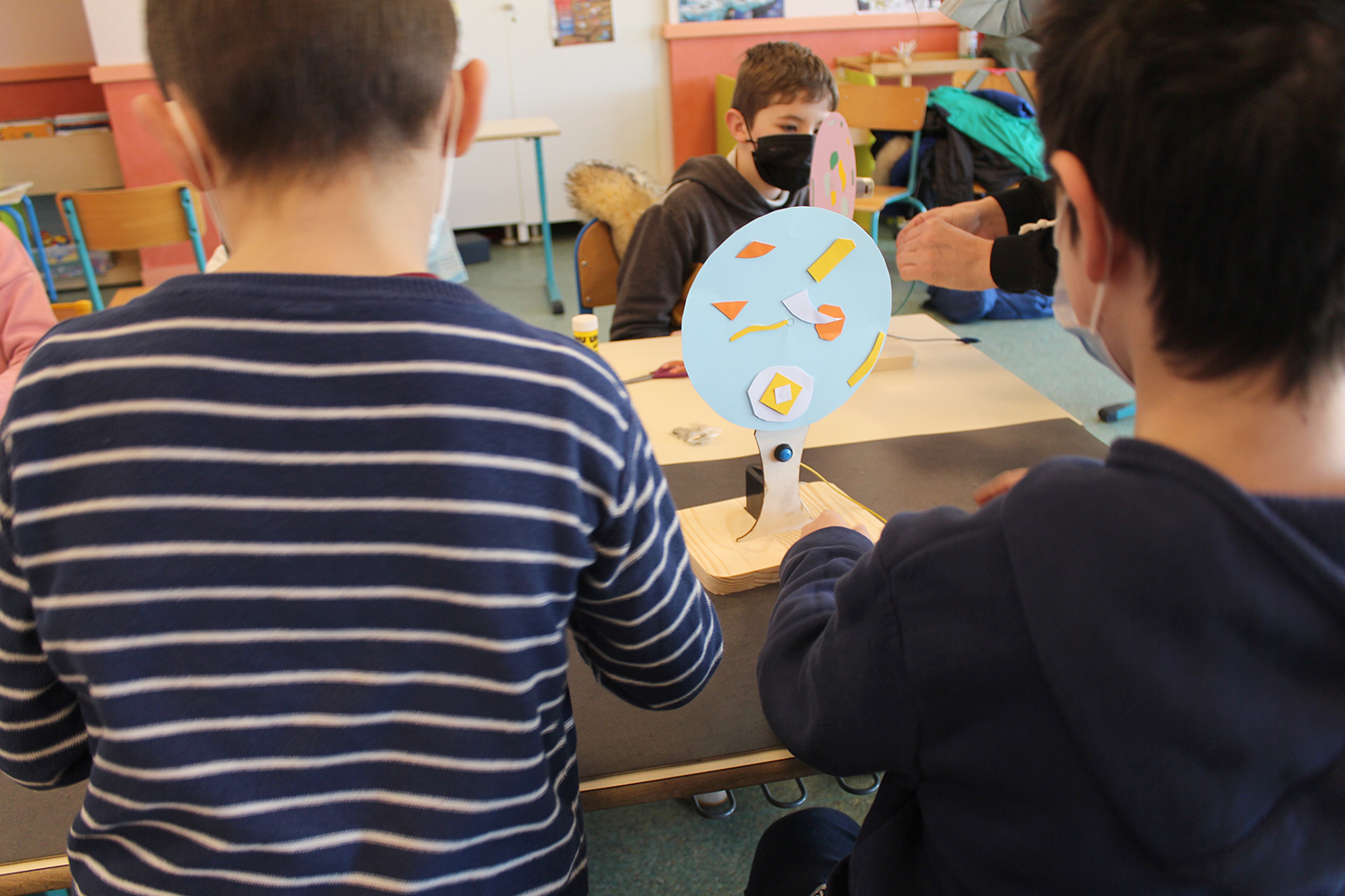 Atelier de création Tourne-disques avec des enfants de l'accueil de loisir de Pont-Péan.