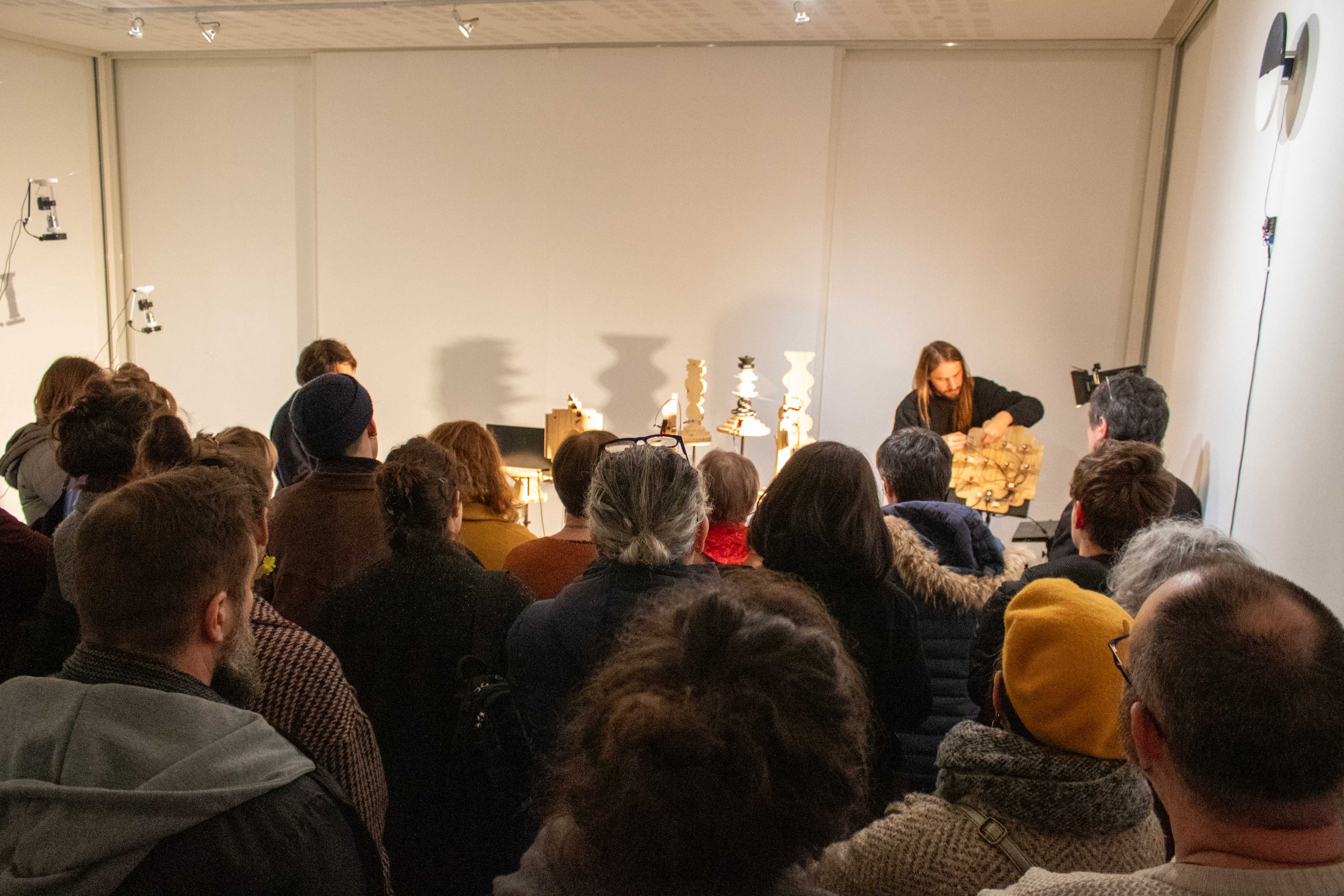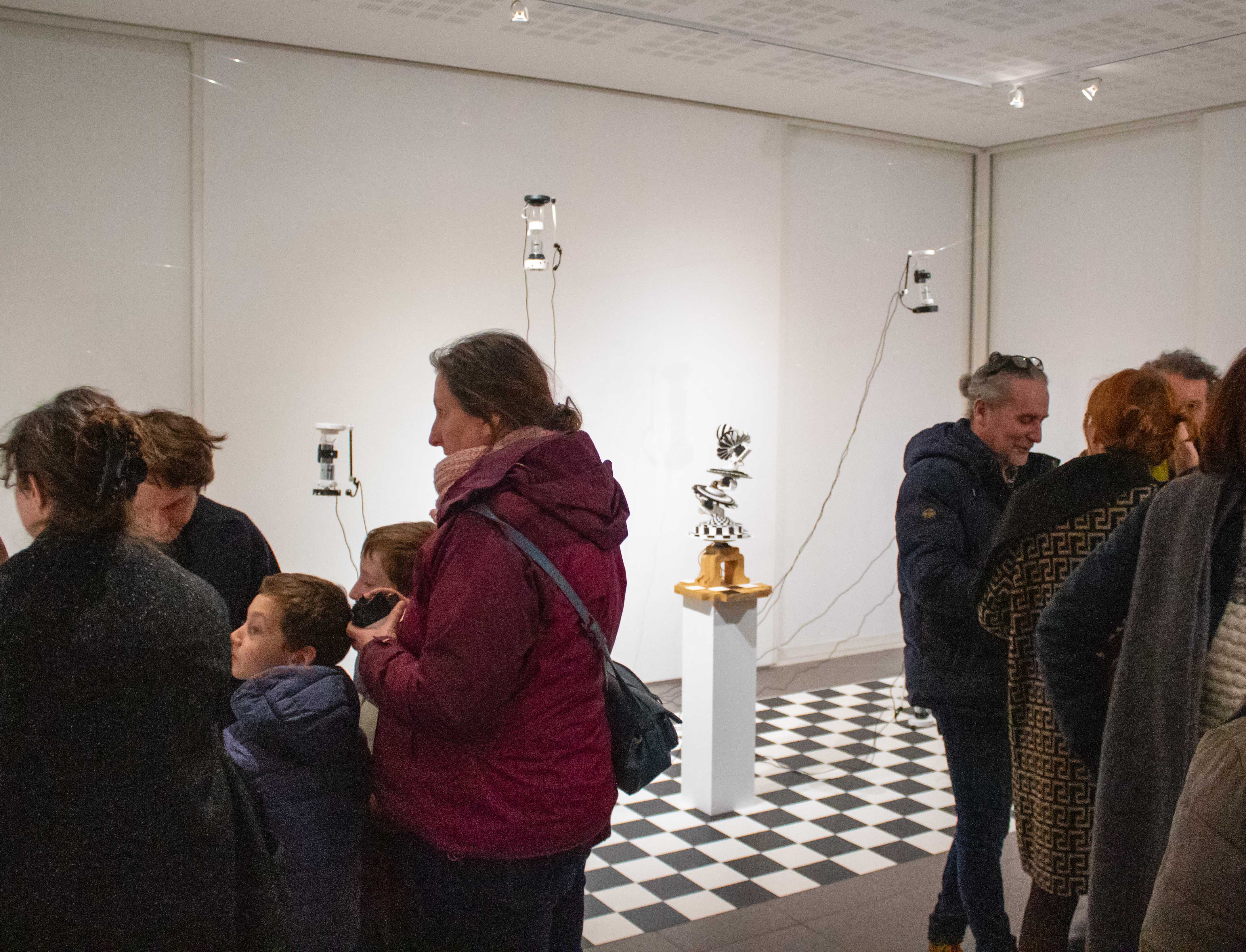 Vernissage de l'exposition Les Flûtes et le fou à L'Aparté, lieu d'art contemporain à Iffendic.