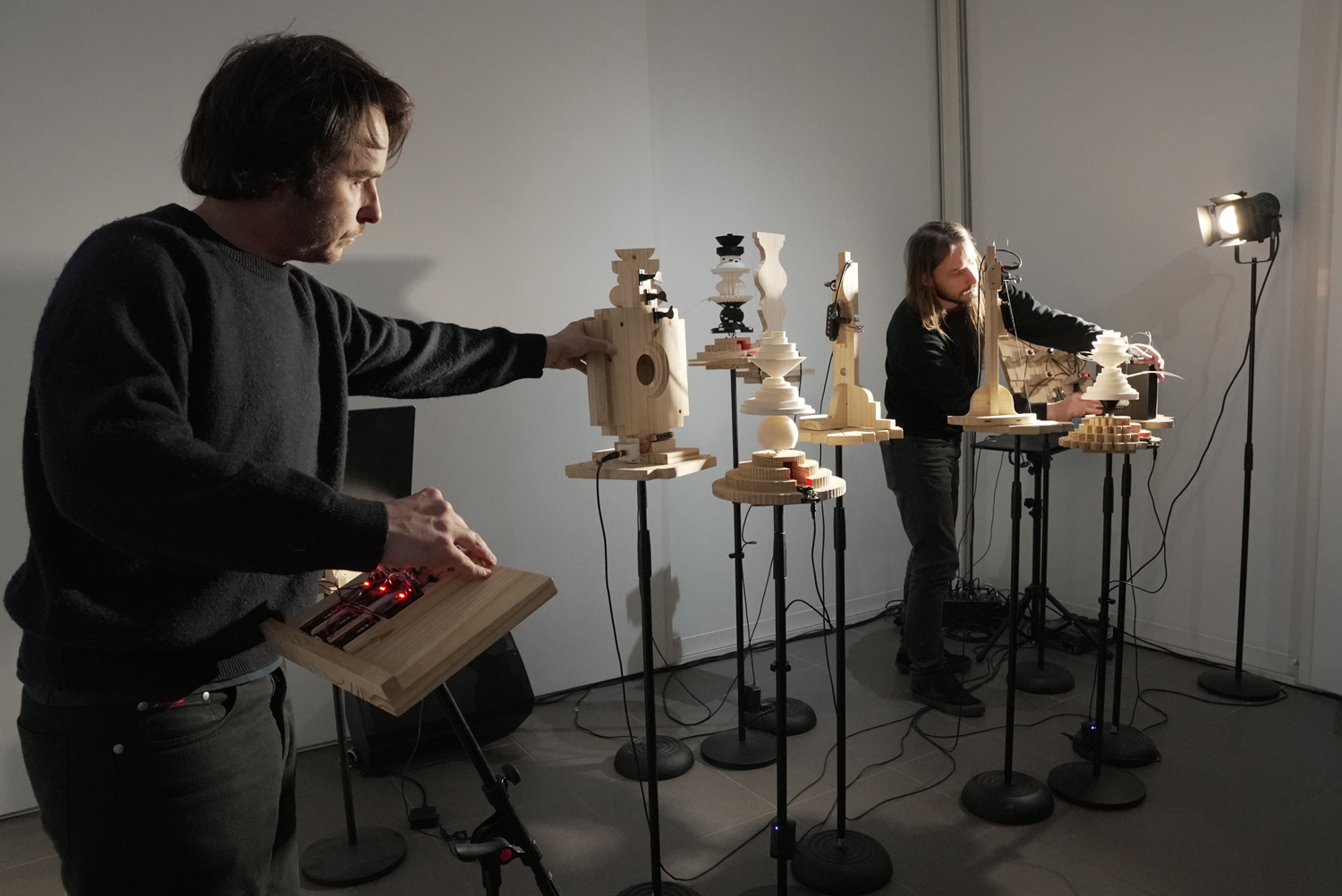 Les visiteurs et visiteuses ont découvert les oeuvres exposées et assistés à une performance inédite des Phonotons et des Flûtes.
