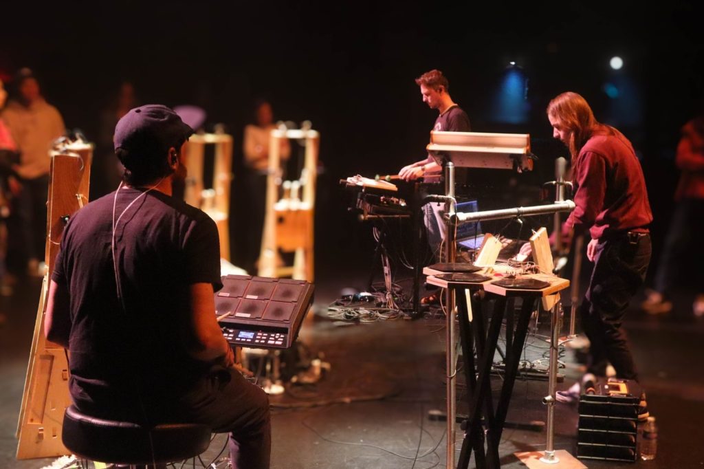 Le trio que compose Playing with machines se réunit autour d’une passion commune pour la musique électronique ambiante et un attrait pour l’expérimentation de nouvelles formes instrumentales. Ici, la fabrication d’une lutherie dite 2.0 est au cœur de l’esthétique musicale et scénographique.